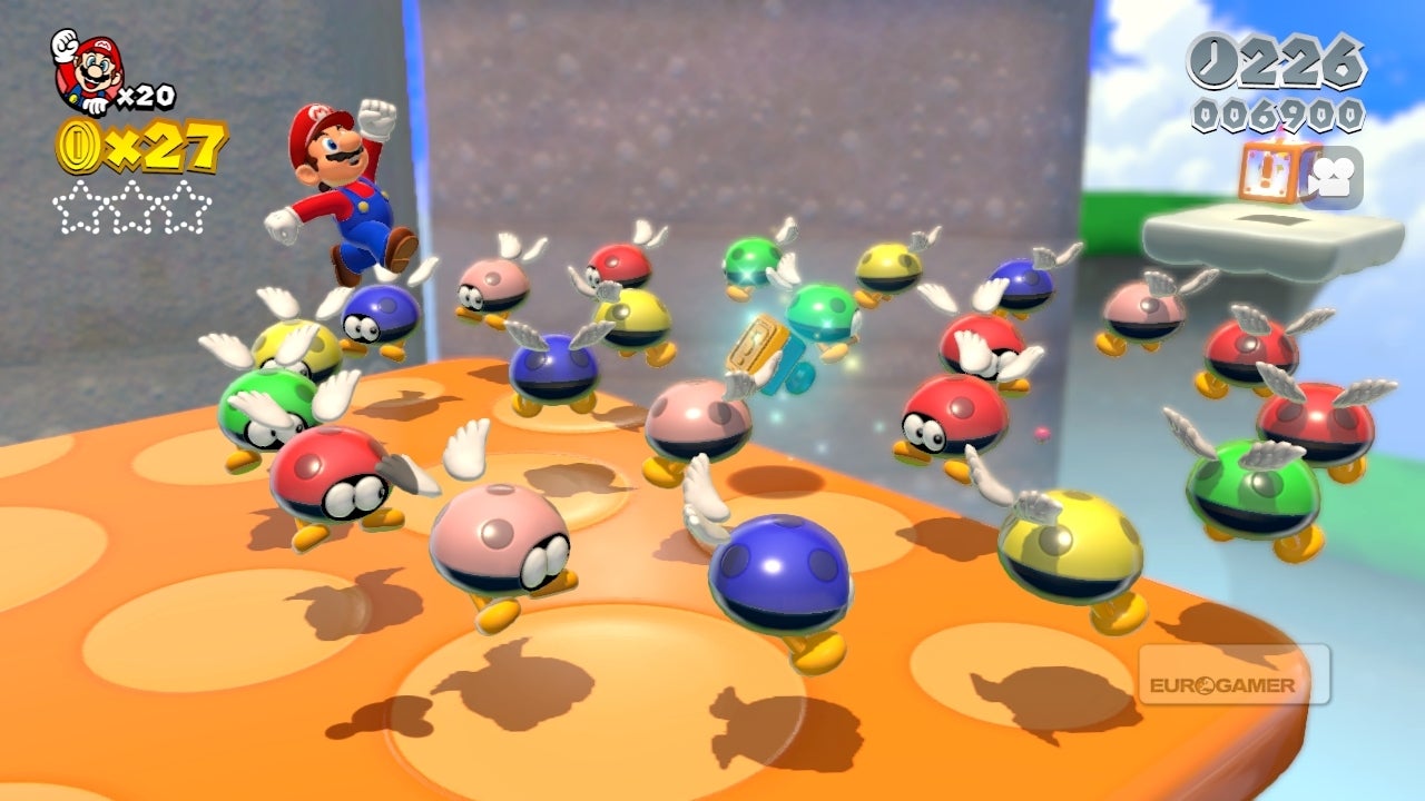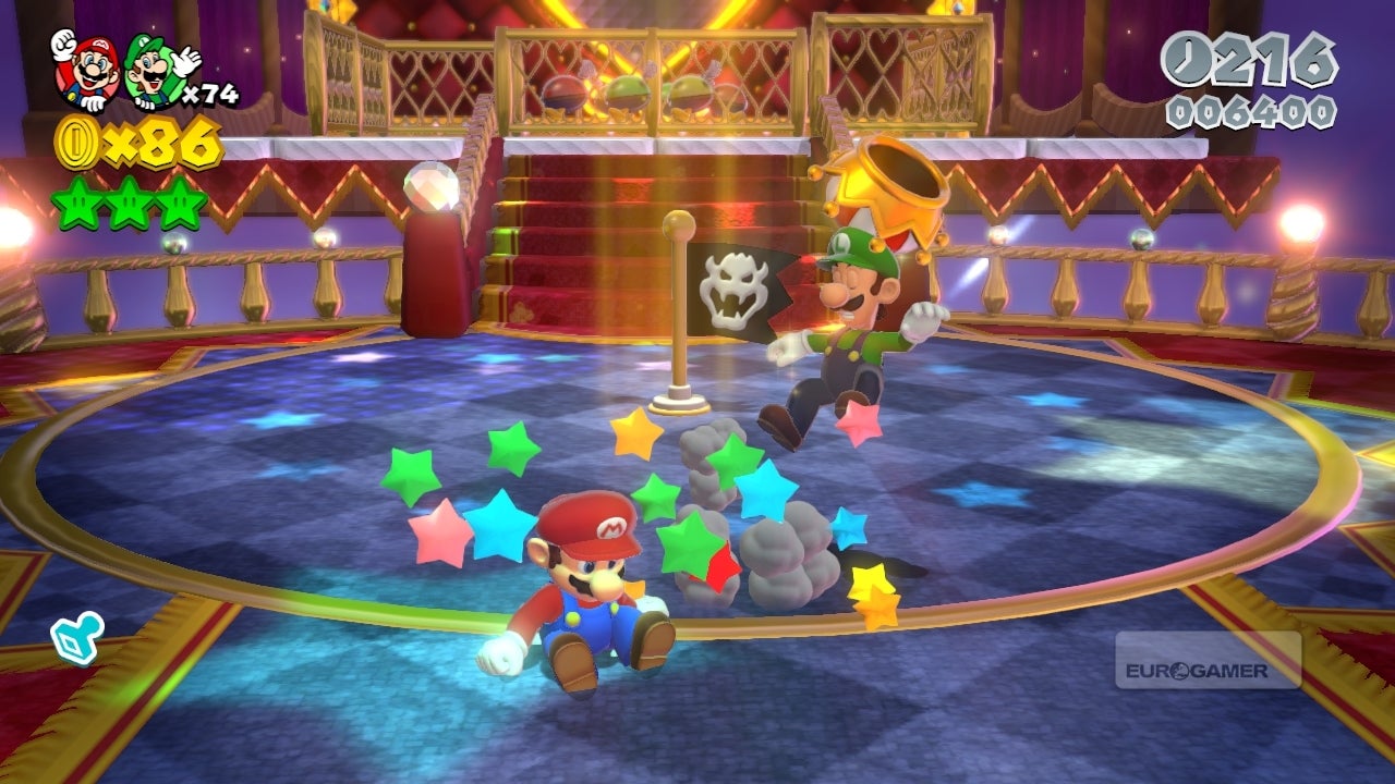 De kroon die aan het einde van ieder level aan de persoon met de hoogste score wordt uitgedeeld, staat symbool voor de speelsheid van Super Mario 3D World. Je springt er niet hoger mee, verzamelt er geen extra muntjes mee en je kunt ook niet vaker geraakt worden. Maar wat is er nu leuker dan met die glinsterende kroon op je koppie je vrienden er constant aan herinneren dat je de beste bent?