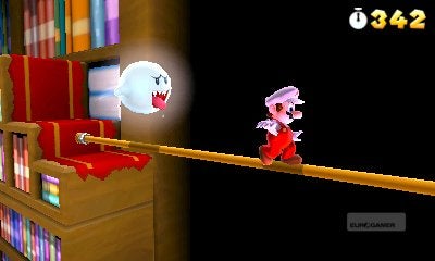 Tot nu toe voegt de 3D-weergave namelijk vooral wat extra eye candy aan de reeds verschenen games toe. Spelmechanieken veranderen er niet door, buiten dan dat je eventueel een voordeel haalt uit het extra dieptezicht dat 3D toevoegt. In Super Mario 3DS zijn de 3D-graphics haast onmisbaar gemaakt, en dat komt doordat de makers een groot stuk van het spel ontworpen hebben rond die derde, nog steeds relatief onontgonnen, derde dimensie.