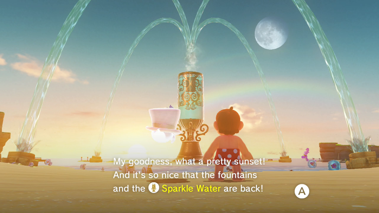 Anders dan in de oude Mario-games word je niet uit het level gesmeten van zodra je een Moon hebt gevonden, maar verandert de wereld rondom je dynamisch mee. Als je bijvoorbeeld de eindbaas van Luncheon Kingdom (Kookrijk) een eerste keer hebt verslagen, wordt die gigantische vogel zo woedend dat de vulkaan in het midden van het level overkookt. Hierdoor wordt een heel nieuw deel van het level toegankelijk. Om vervolgens de top van de vulkaan te bereiken moet je slim gebruikmaken van je pet Cappy en je vertrouwde moves.