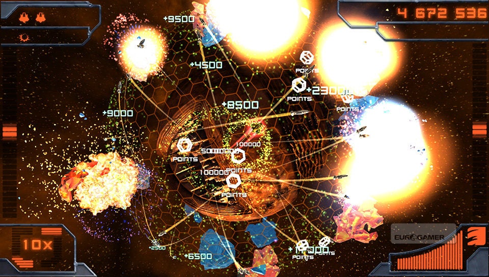 Maar het zou geen Vita-spel zijn moesten de ingebouwde mogelijkheden van de Vita niet benut worden. Zo zijn er drie speciale aanvallen die je kunt initiëren door gebruik te maken van ofwel de aanraakschermen of de bewegingssensor. Zo zal er een kring van raketten uit je schip afgevuurd worden door een simpele tik op het scherm. Tik je op de achterkant van de Vita dan zal een zwart gat rond je schip verschijnen die alles rondom je vernietigd en naar het diepste der zwarte gaten opzuigt. De EMP-bom kan dan weer geactiveerd worden door eventjes kort te schudden met de Vita.