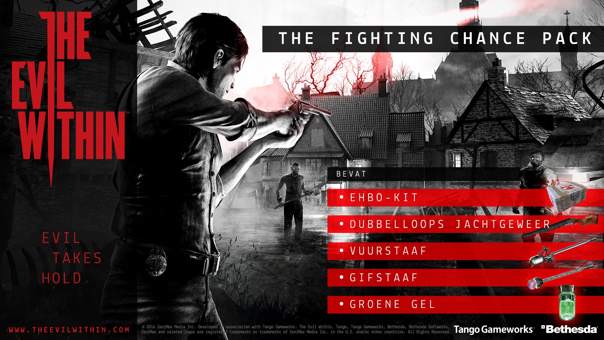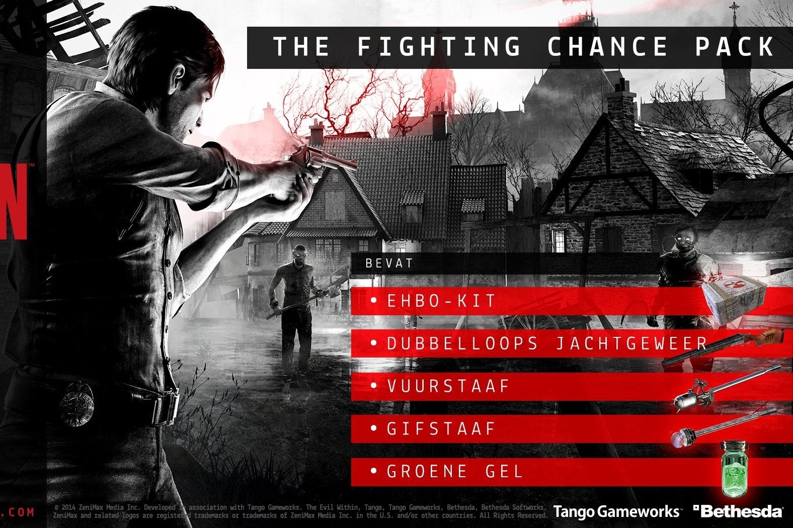 Daarnaast onthult Bethesda een pre-order bonus, de Fighting Chance Pack. Je krijgt toegang tot deze downloadbare uitbreiding zodra je de game voor de releasedatum bestelt. Deze bevat onder meer een sterkere shotgun, verschillende typen pijlen voor je kruisboog en 'groene gel' om de hoofdrolspeler mee van upgrades te voorzien.