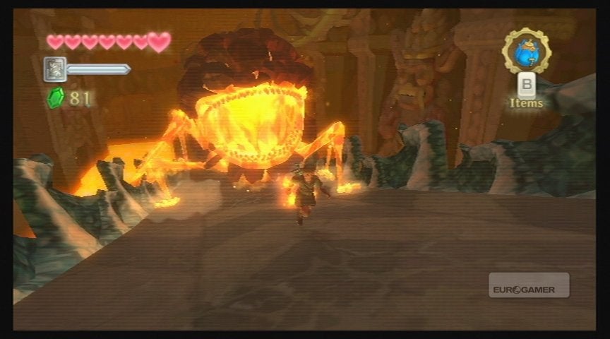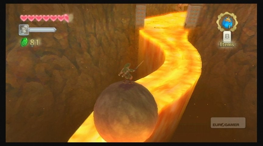 In Skyward Sword zijn trouwens niet alleen de dungeons de puzzels zoals we ze kennen, maar elke trip naar die typische Zelda-puzzels zijn uitdagingen op zich. Elke stap die je dichter komt bij een kerker doe je door eerst een andere omgevingspuzzel op te lossen. Zodoende zijn haast alle locaties, werelddelen, … op zich al hersenbrekers. Je kunt haast bijna spreken van buiten- en binnendungeons. Het verschil is soms haast niet te merken. Zo heb je op een bepaald punt in Lanayru Desert het idee dat je met een dungeon bezig bent, maar blijkt het uiteindelijk slechts de inleiding naar een dungeon te zijn. En dat gevoel zul je nog een paar keer ervaren. Binnen geraken in een tempel of kerker is dus al even uitdagend als de tempels en kerkers zelf.