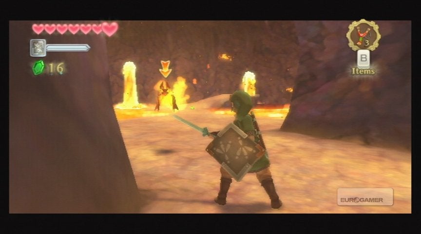 Je zult uiteindelijk zelf op onderzoek moeten trekken en je onder het dik bezaaide wolkendek moeten begeven naar de begane grond, waar niemand van Skyloft sinds eeuwen voet aan grond heeft gezet. Het is daar, in drie uitgestrekte gebieden dat de voornaamste zoektochten, puzzels en opdrachten zullen plaatsvinden. Er is als eerste Faron Woods, een typisch Zeldaiaans (als dit woord al bestaat) bos waar de Kikwi's wonen. Hier zul je je eerste dungeon voorgeschoteld krijgen. Daarop volgen de hete lavalandschappen van Eldin Volcano. Als laatste zijn er nog de zandvlaktes van Lanayru Desert en de bijbehorende ontmijningsfaciliteiten.