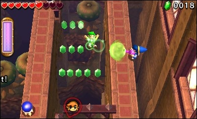 Tri Force Heroes leunt veel meer op samenwerking dan zijn spirituele voorgangers Four Swords en Four Swords Adventures. Je deelt de levensmeter met je strijdmakkers. Iemand optillen en voor de gein in de lava werpen, zit er dus niet meer in. Je bent op je kompanen aangewezen en moet elkaar constant met voorwerpen helpen. Zo blaas jij met je bommen een rotsblok op. Daarna werpt de tweede speler met een windstoot van de Gust Jar de derde speler over een klif, die jou op zijn beurt met zijn boemerang naar de overkant haalt. Het zijn de vertrouwde, kwalitatieve Zelda-puzzels, overgoten met een multiplayersausje.