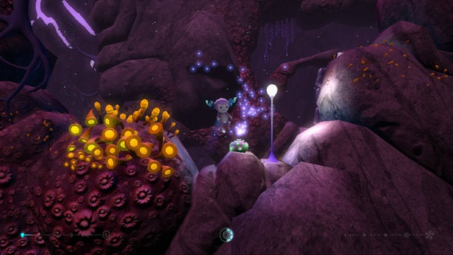 Verwacht je dus niet aan snelle gameplay en bloedstollende actie. Verwacht je zelfs niet aan een hersenmishandelende uitdaging. The Undergarden is bedoeld om je zowel op visueel als op auditief vlak te laten genieten van zijn omgevingen. Dit doet de game door alle aanwezige fauna felle, maar totaal niet aanvallende kleuren te geven. Om vervolgens Marcel voorbij te zien vliegen, gevolgd door een opleving van geel en blauwschitterende planten is toch wel een psychedelische ervaring. Ook muziek speelt een hoofdrol in de game. Doorheen de levels zul je personages vinden die een muziekinstrument bespelen. Deze muzikanten kun je dan meenemen om hun effect op de fauna te zien. En hoe meer virtuozen je meesleurt, hoe vrolijker het liedje wordt en des de kleurrijker de omgevingen worden.