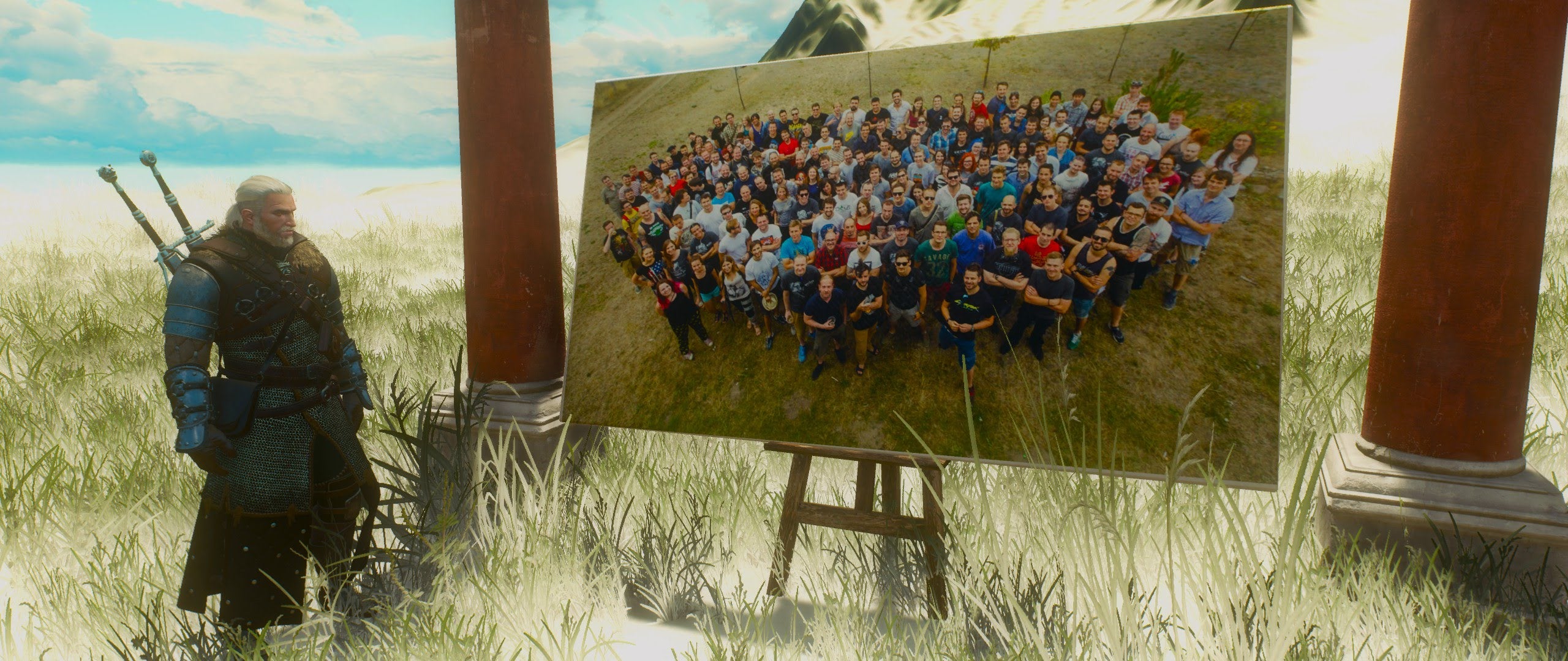 Op een heuvel nabij Beauclair Palace kun je een schilderezel vinden met daarop een canvas. Je kunt het haast niet missen, want er is niks anders in de buurt. Activeer je Witcher Senses en plots zul je het CD Projekt RED team zien.