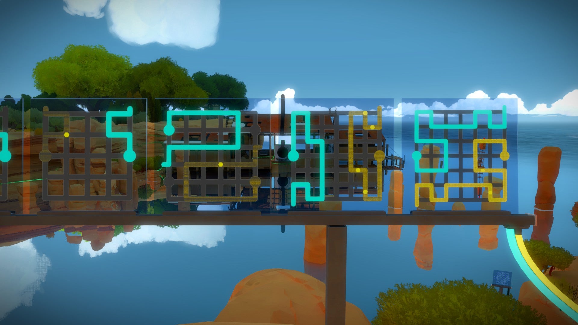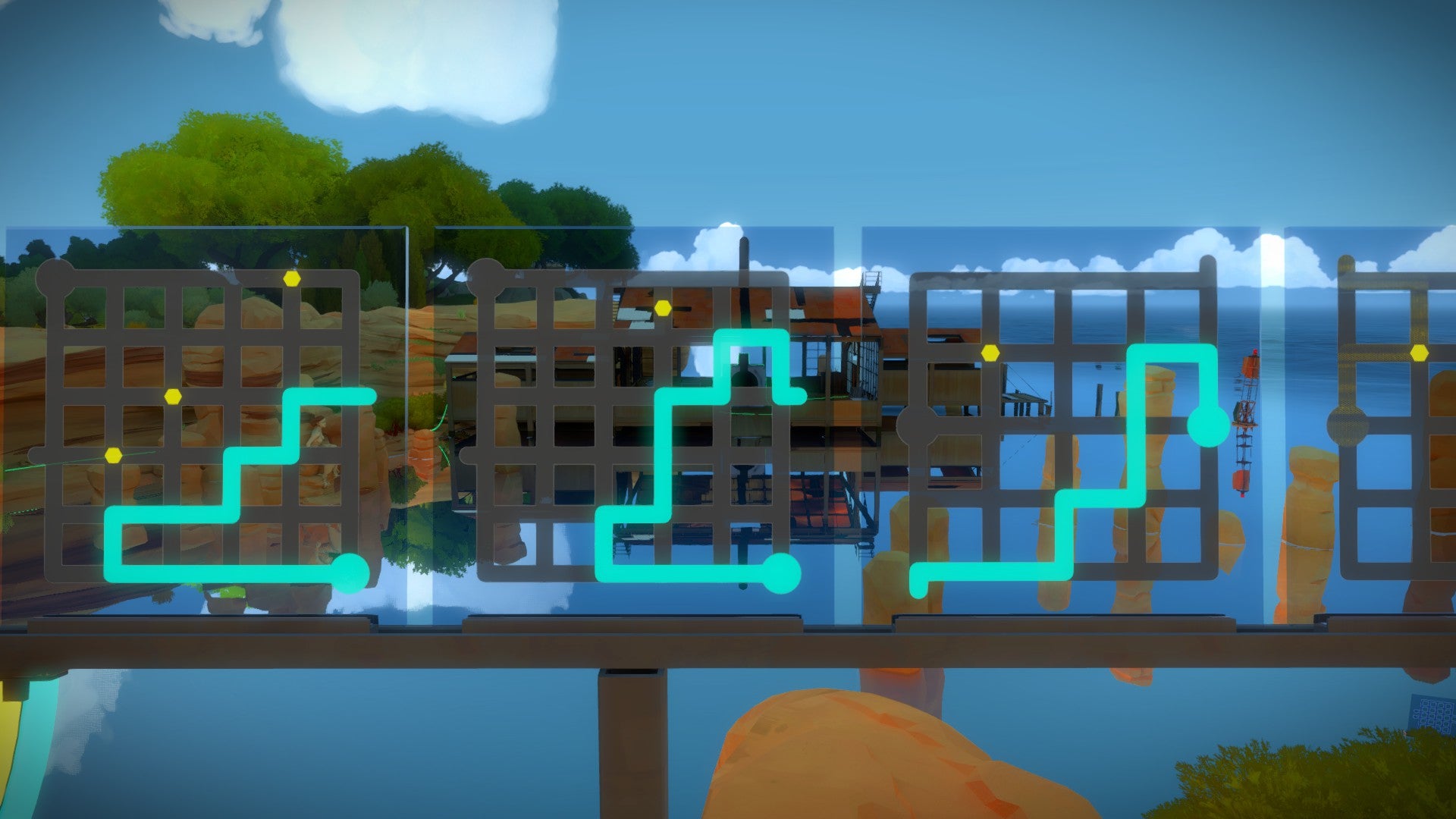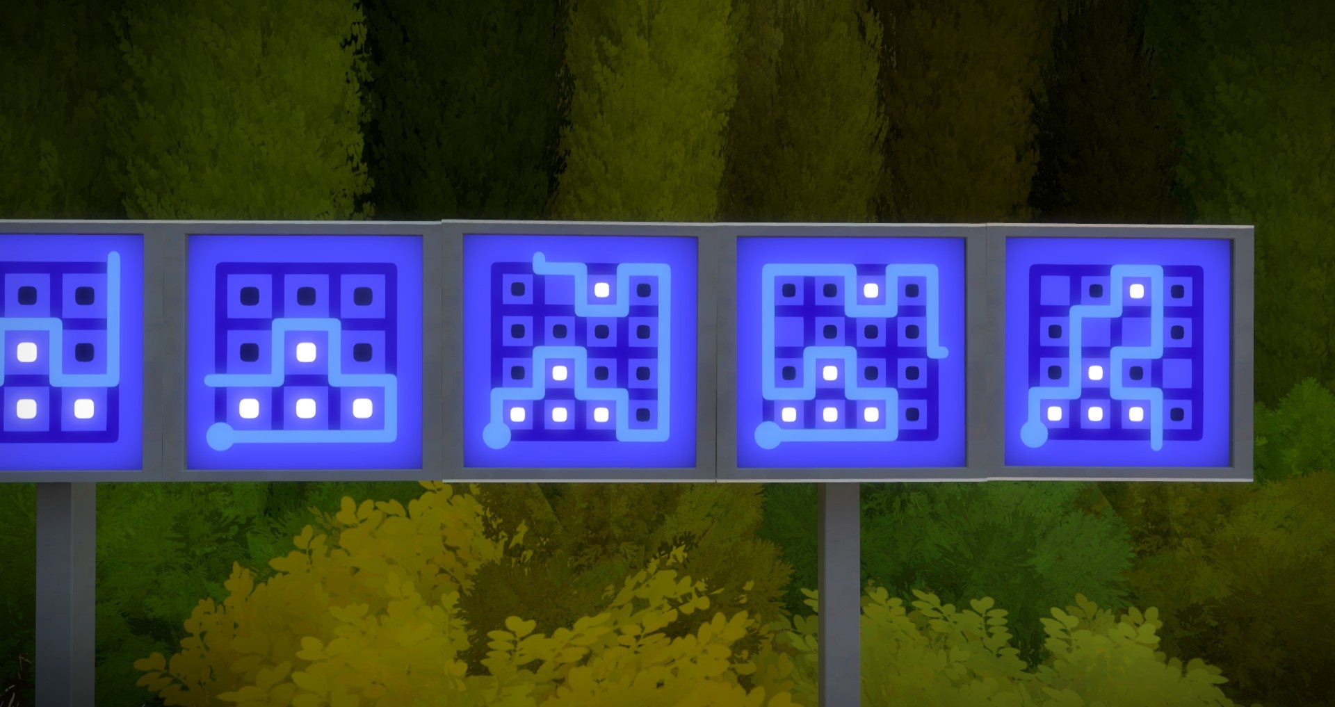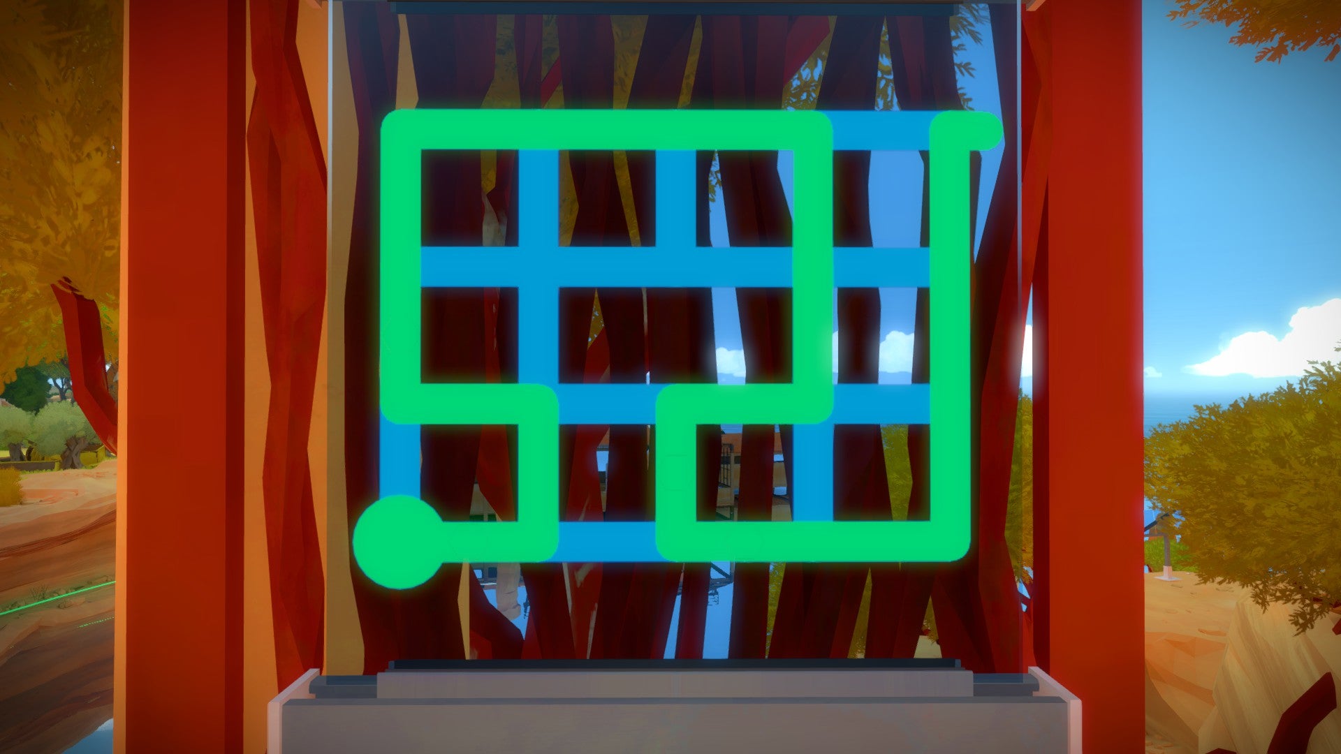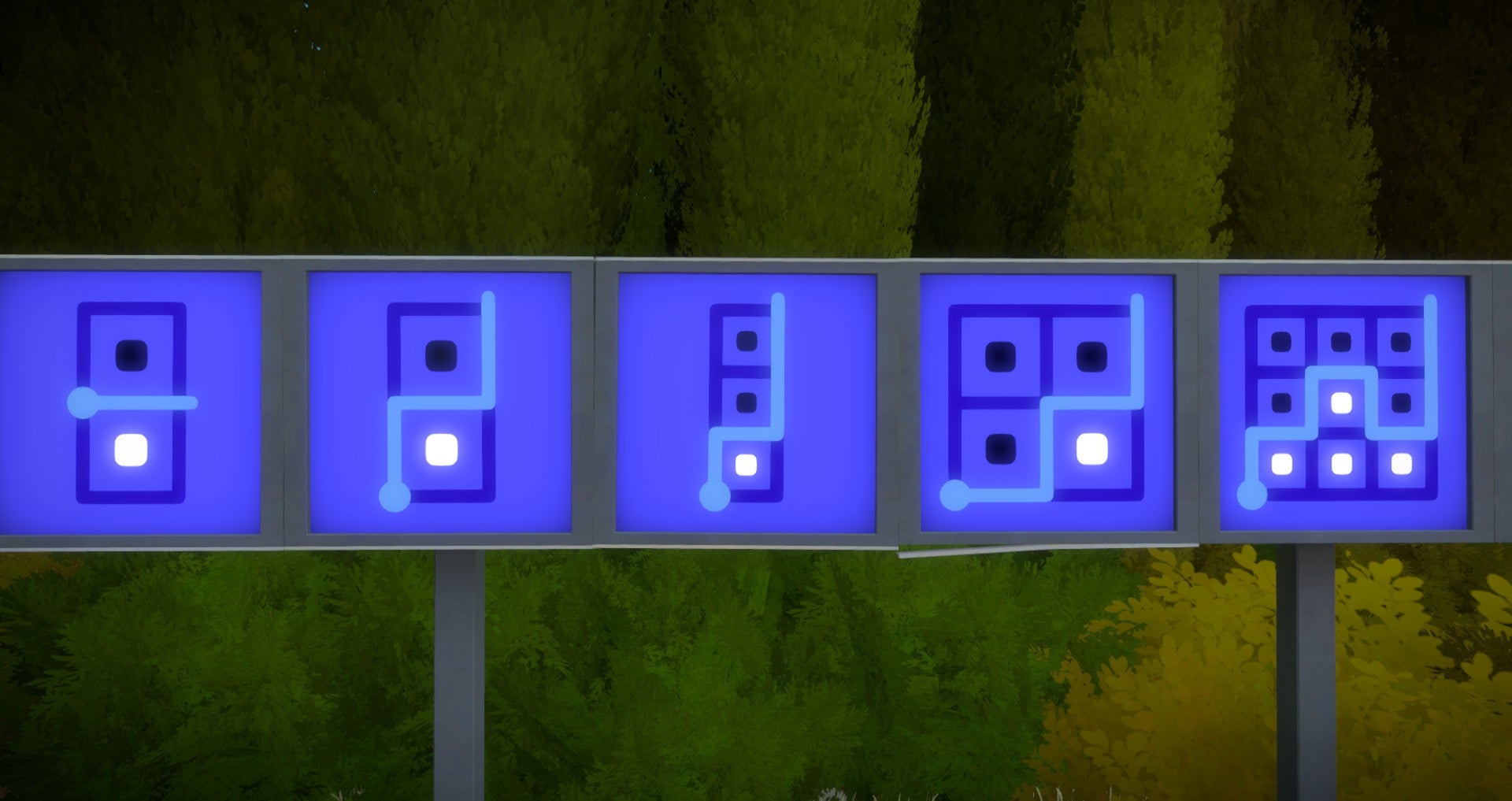 In een veld vlakbij het huis zie je negen schermen staan, waarvan één blauw kleurt. Om deze puzzels op te lossen moet je de lijn van het beginpunt naar het eindpunt leiden en een scheidingslijn vormen tussen de witte en zwarte vlakken. Ook deze puzzels dienen ter introductie en bezorgen je waarschijnlijk nog geen zweet op het voorhofd.
