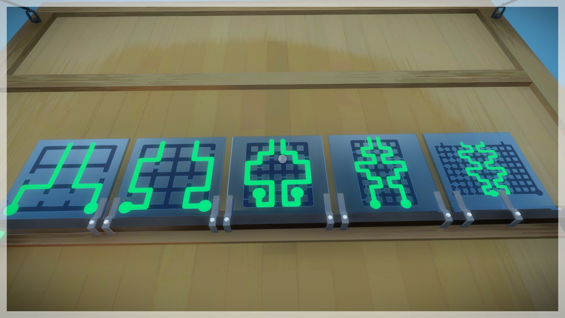 Wanneer deze vijf puzzels zijn opgelost, valt de muur omlaag en krijg je zicht op de zee. Leuk, maar de nieuwe geactiveerde puzzels zijn elders. Ga terug naar de ingang van het gebouw om ze op te lossen. Opnieuw gaan ze een stapje verder op wat je net gedaan hebt.