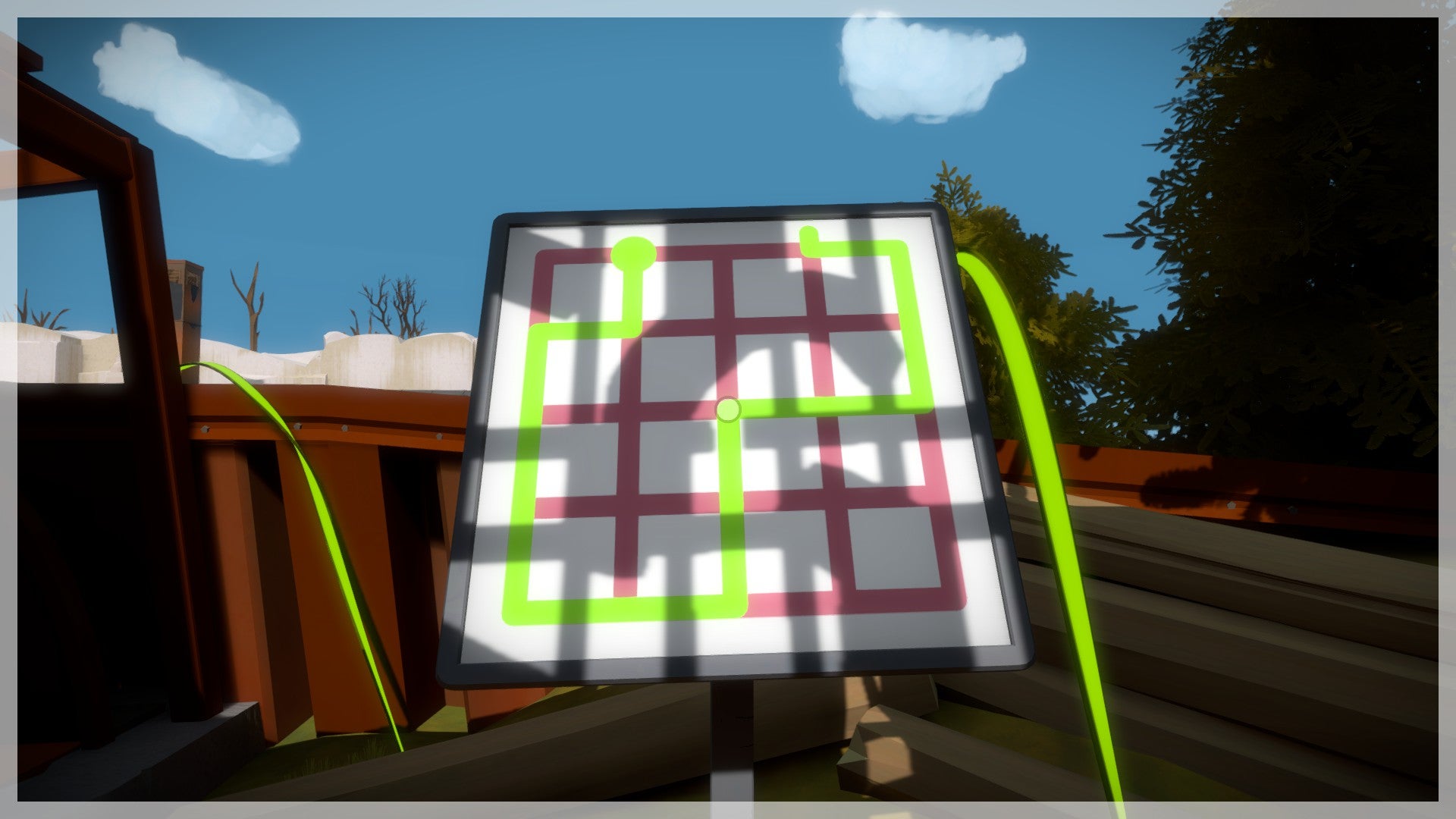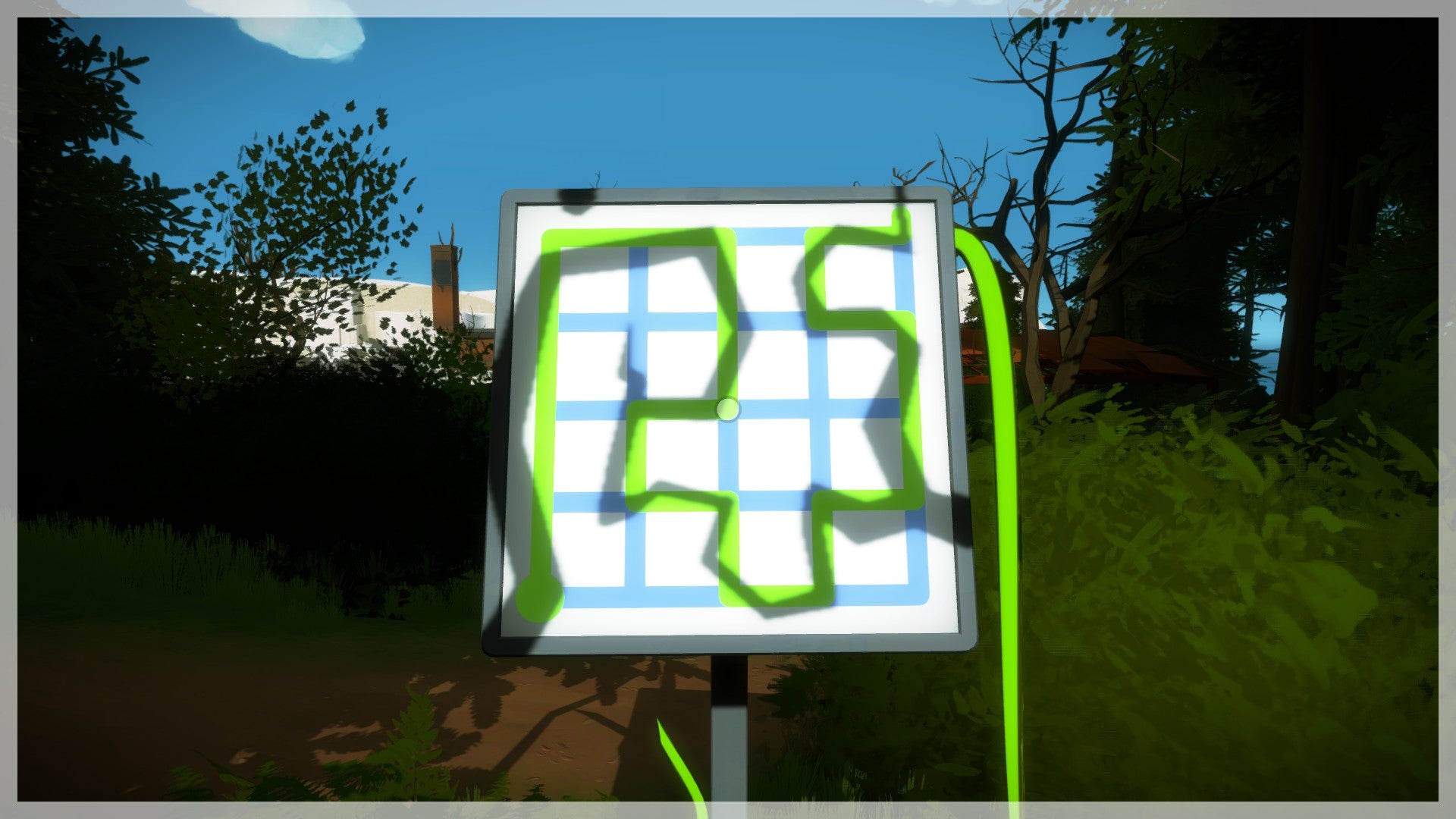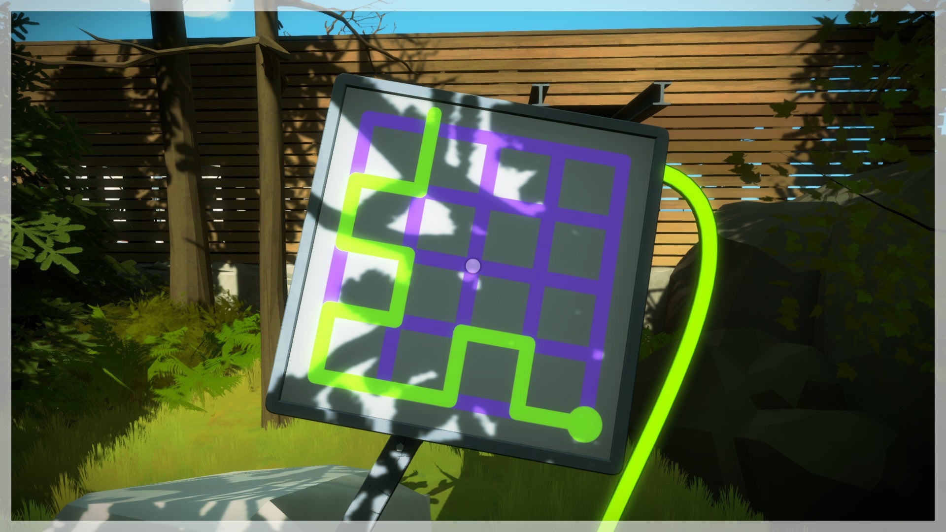 De Shady Trees, ofwel het bos met de schaduwen en groene bomen, vinden we één van de gezelligste gebieden van The Witness. De puzzels hier vereisen niet veel denkwerk, enkel een goed stel ogen en de leuke omgeving biedt een ontspannend alternatief voor het tandengeknars dat de puzzels in enkele andere gebieden veroorzaken.