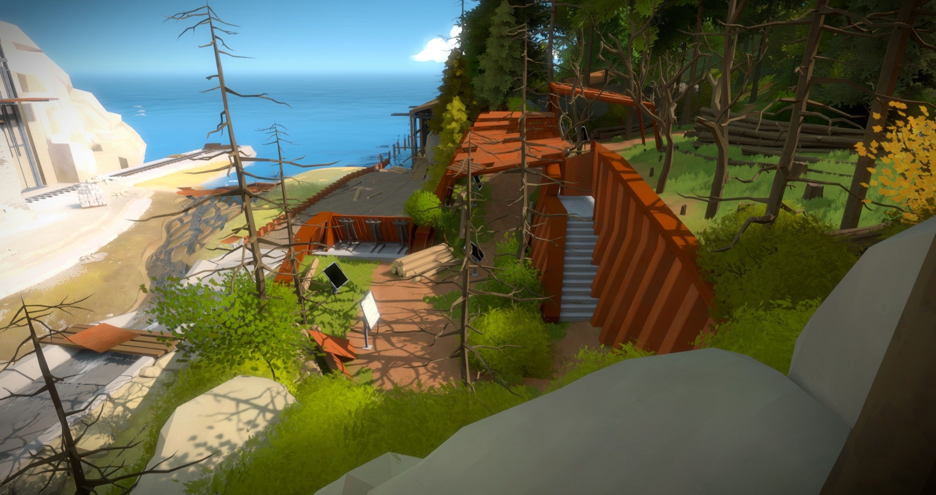 Je zou denken dat ze daar op het eiland van The Witness hun prachtige bomen laten groeien, maar niets is minder waard. Naast een moeras, steengroeve, kasteel en woestijn is het anders zo mysterieuze eiland ook uitgerust met een houtzagerij. Of het meer is dan 'zomaar een houtzagerij', daar hebben we het raden naar maar in onze ervaring is in de wereld van The Witness zelden iets wat het op eerste zicht lijkt.