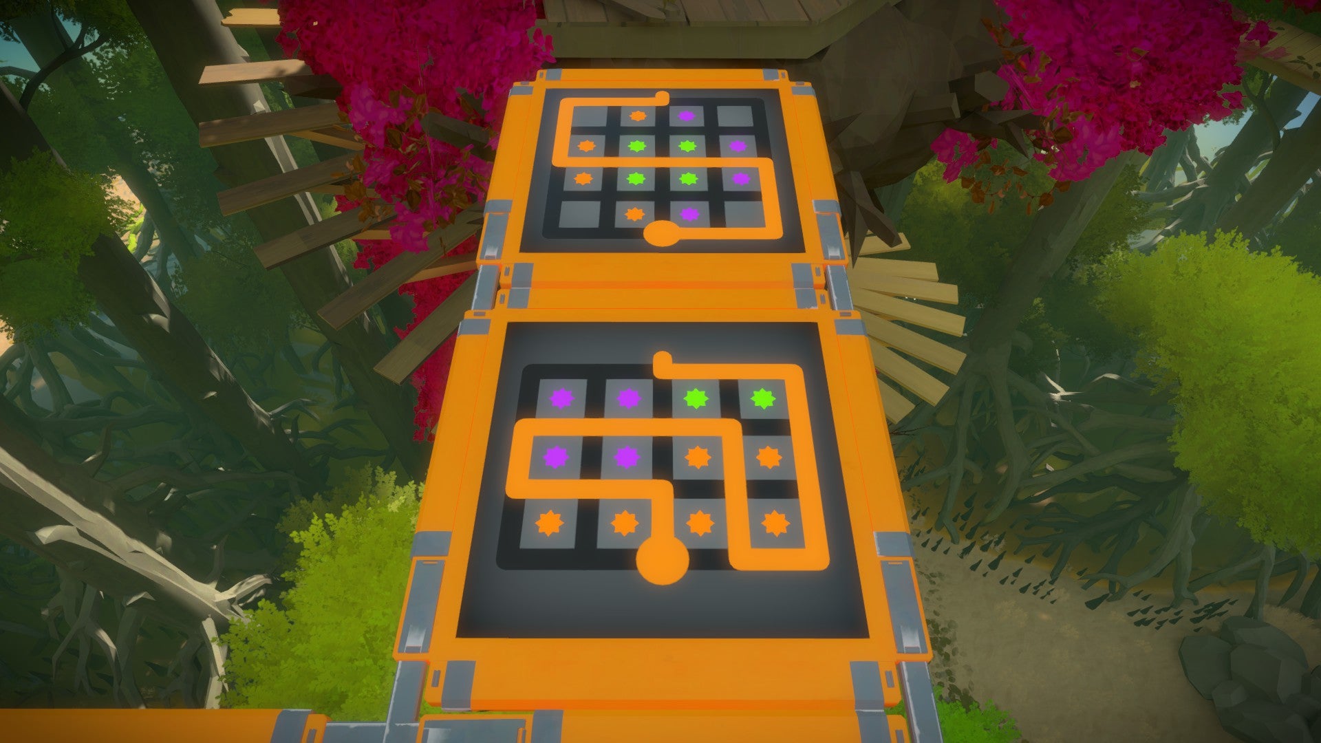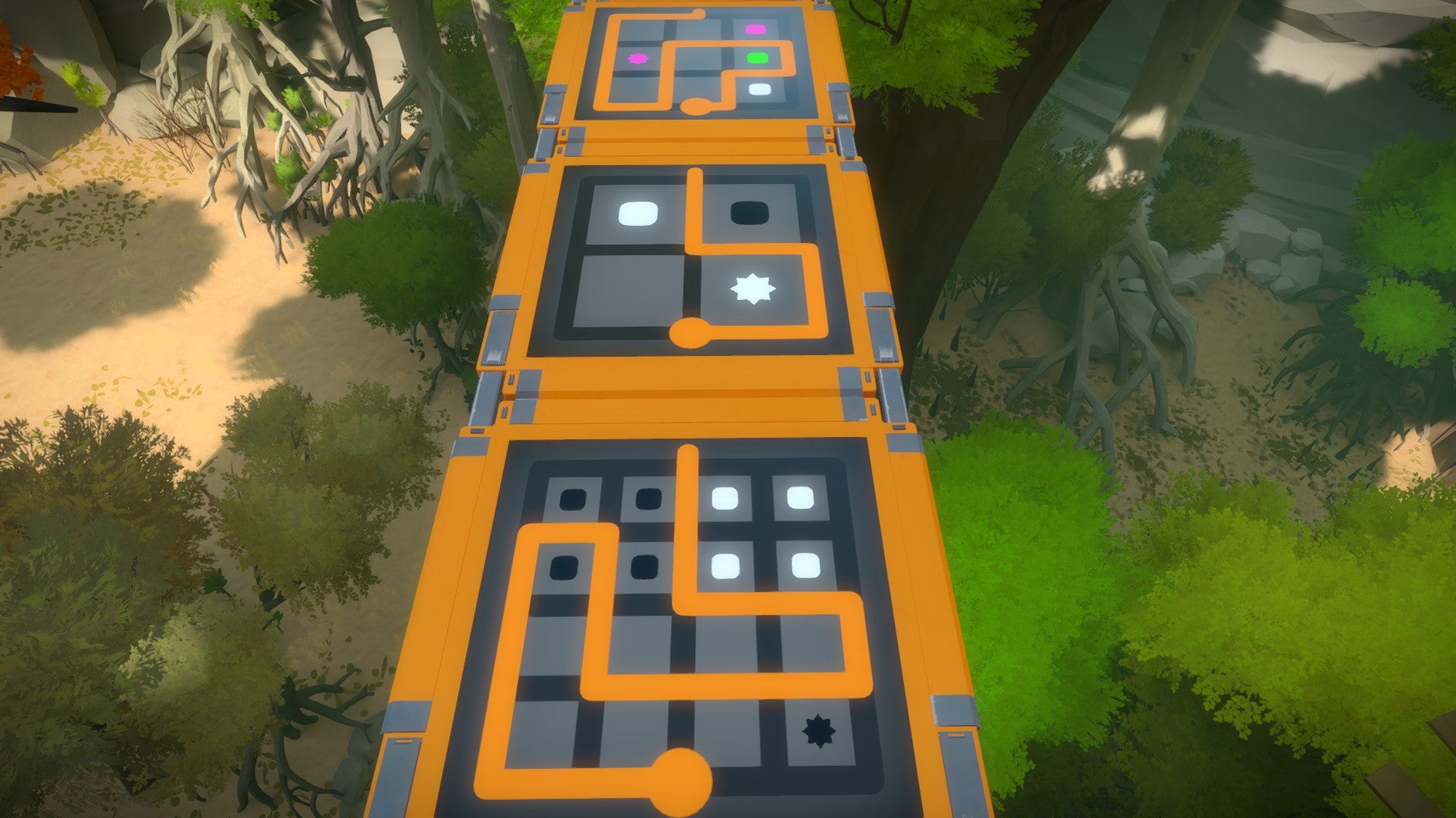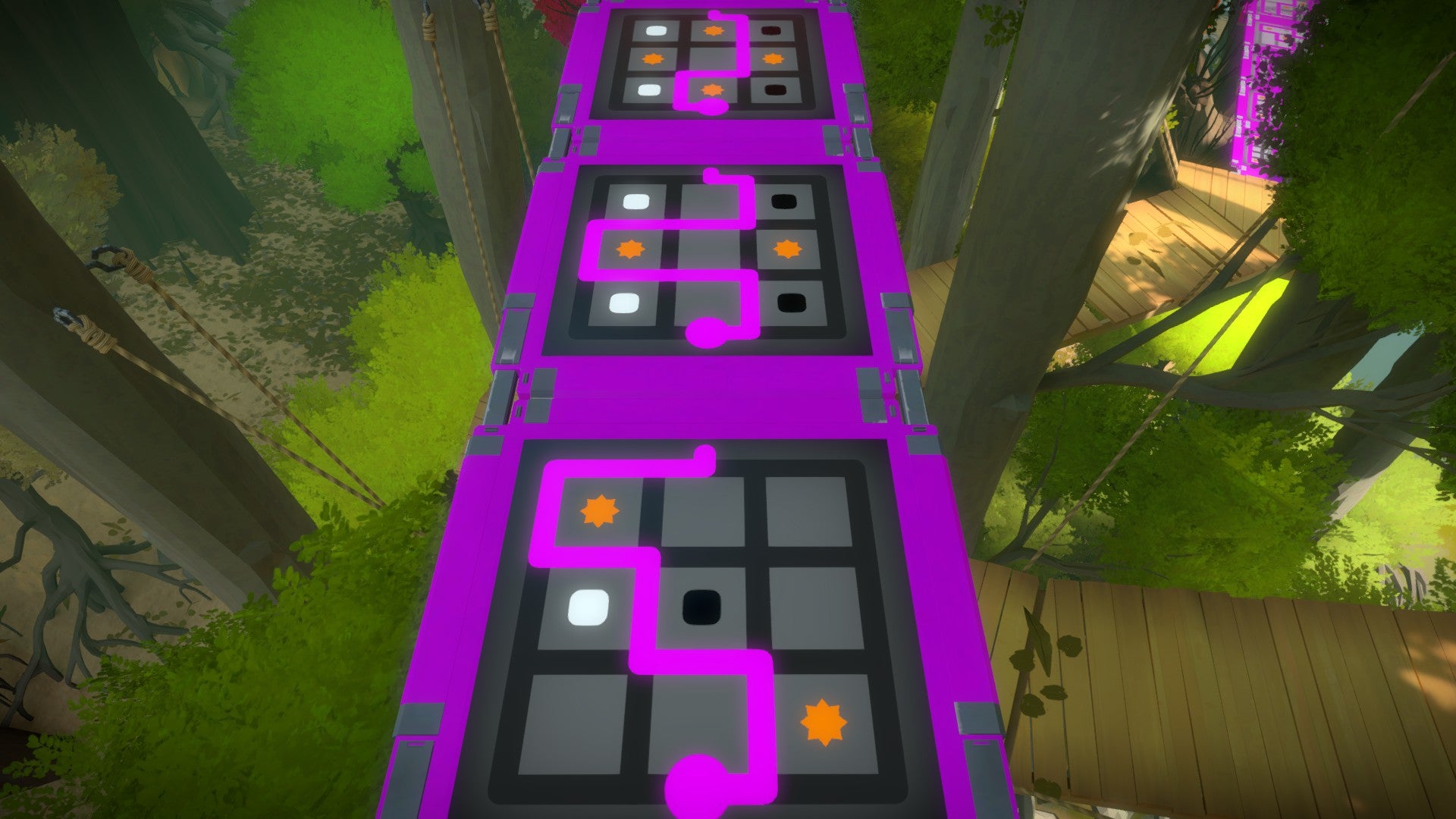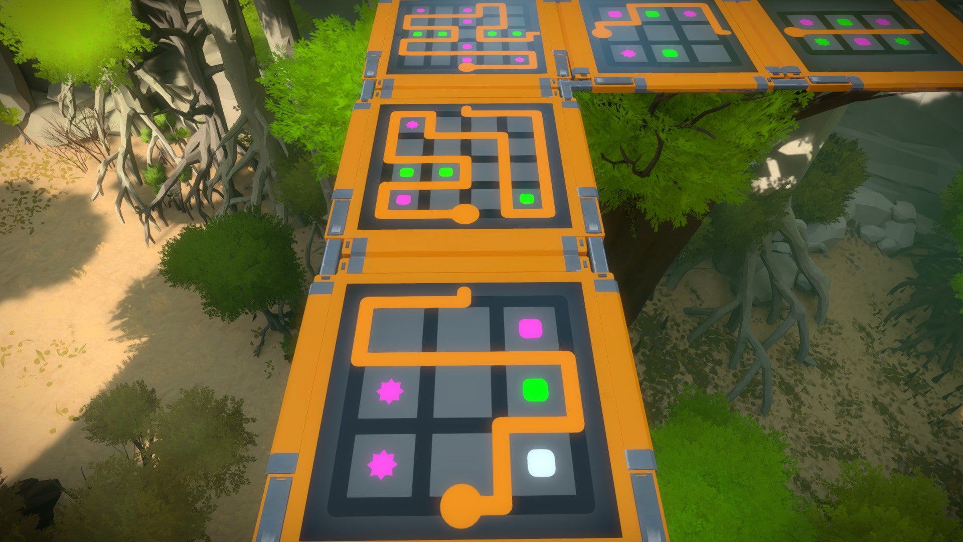 Het gebied van de boomhutten is tegelijk één van onze meest favoriete en één van onze minst favoriete. Het is een prachtige en originele omgeving waarin de puzzels die je oplost (en vooral: de manier waarop je de puzzels oplost) mee bepalen hoe het pad dat je volgt eruit ziet. Tegelijkertijd zijn de puzzels hier ofwel ontzettend simpel ofwel ontzettend moeilijk. Naar onze mening is maker Jonathan Blow hier op een gegeven moment de balans van de moeilijkheidsgraad kwijtgeraakt.