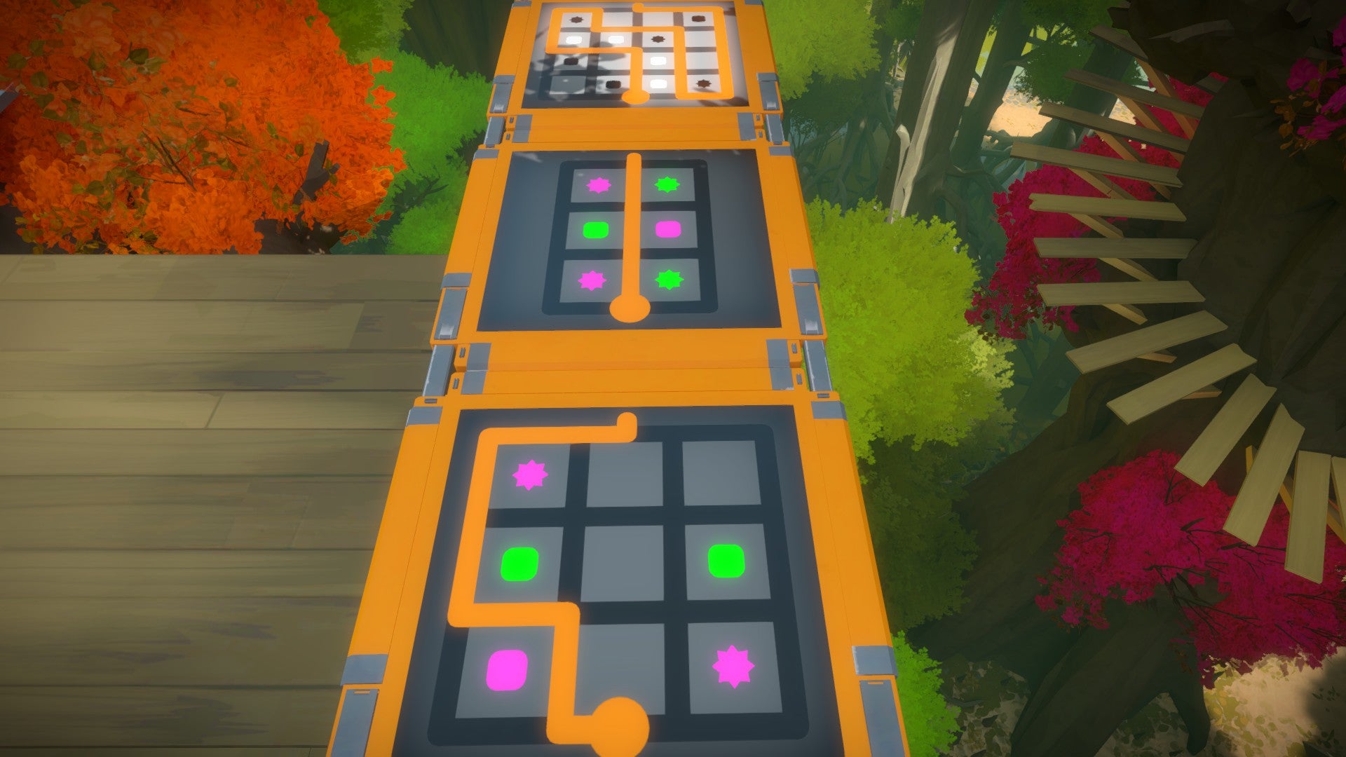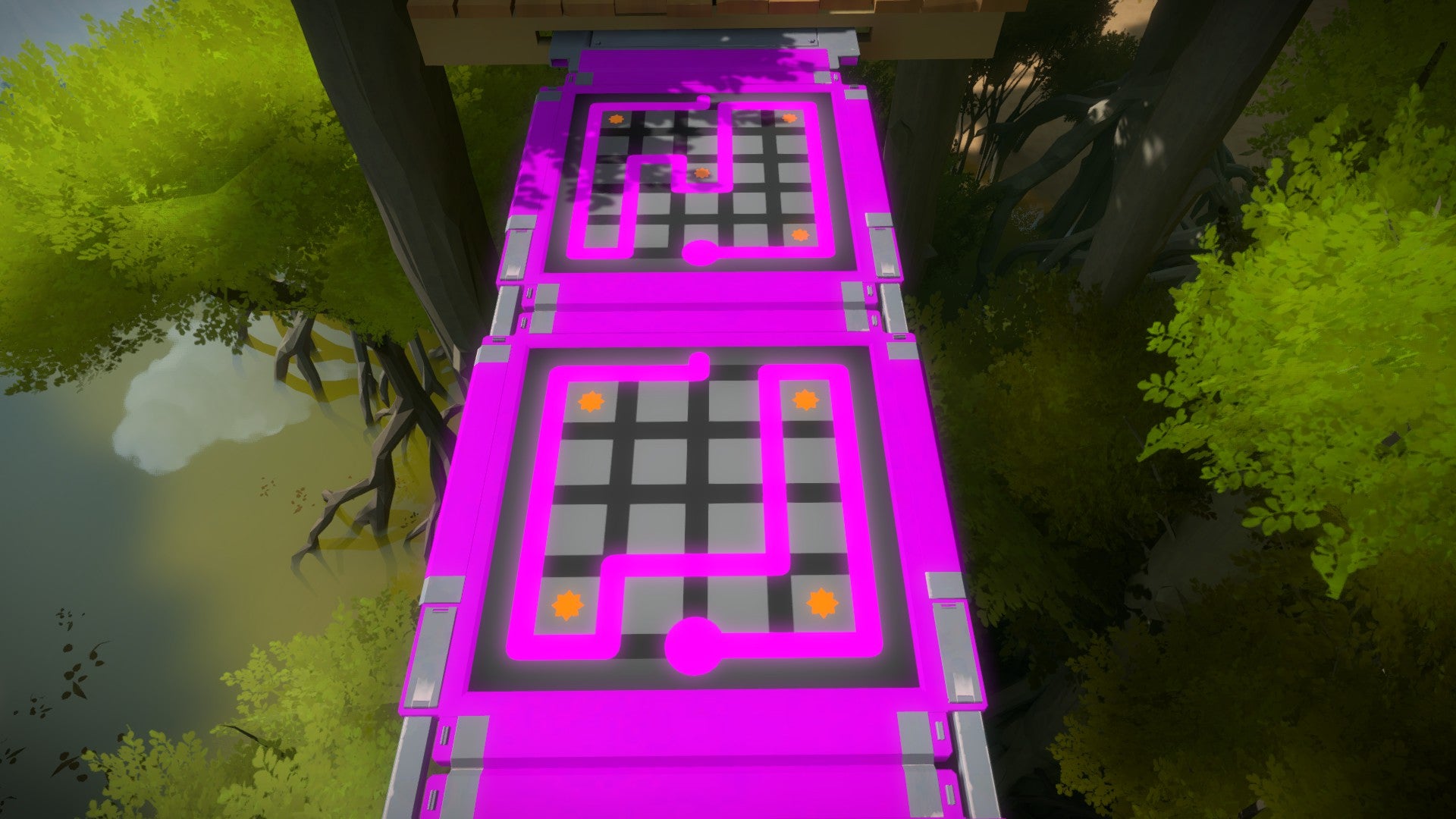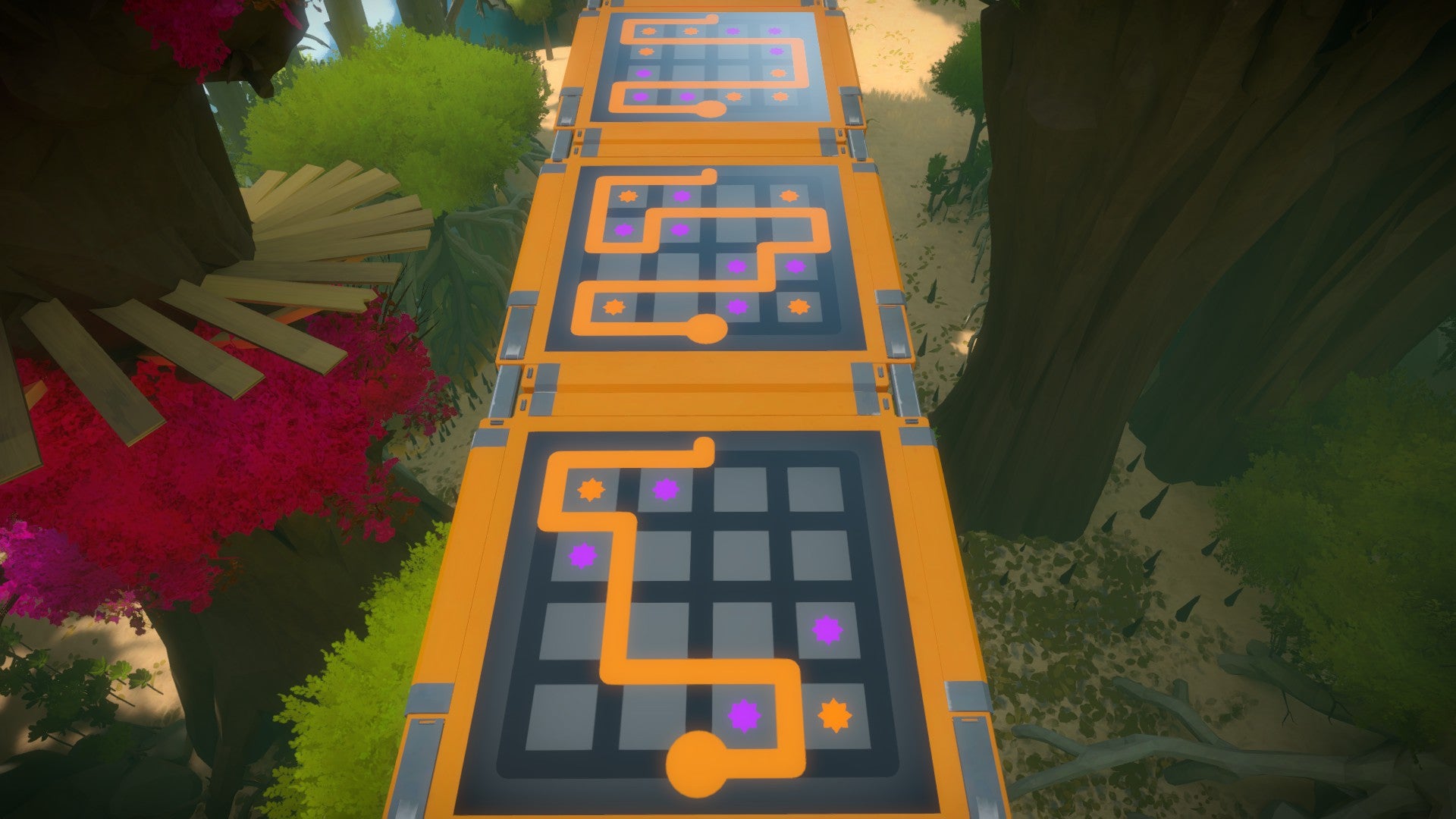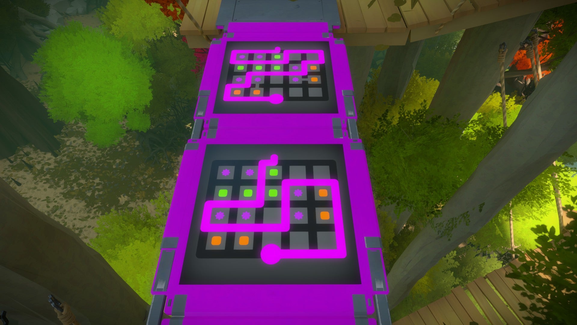 Het gebied van de boomhutten is tegelijk één van onze meest favoriete en één van onze minst favoriete. Het is een prachtige en originele omgeving waarin de puzzels die je oplost (en vooral: de manier waarop je de puzzels oplost) mee bepalen hoe het pad dat je volgt eruit ziet. Tegelijkertijd zijn de puzzels hier ofwel ontzettend simpel ofwel ontzettend moeilijk. Naar onze mening is maker Jonathan Blow hier op een gegeven moment de balans van de moeilijkheidsgraad kwijtgeraakt.