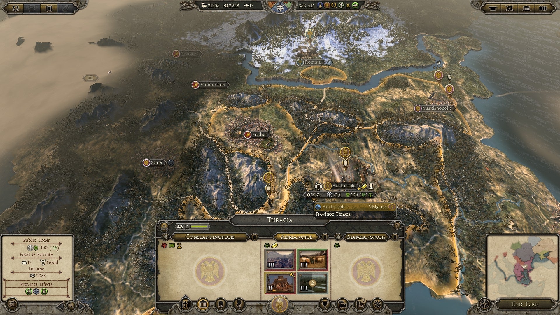 De Hunnen hebben het echter niet zo begrepen op allianties en voor hen is elke Romein er één te veel. Al snel overspoelen ze beide grootmachten en zorgen ze er voor dat de Goten buiten schot blijven. In hun nieuwe bakermat bouwen ze een vloot en leger uit. De pracht en praal van Constantinopel lonkt, maar ook Ravenna aan de andere kant van de zee ligt voor het rapen. Of misschien zijn de voormalige nomaden het sedentaire leven wel beu en trekken ze er terug met hun tentenkampen op uit. Dit zijn het soort keuzes die je met de nieuwe nomadenvolkeren voortdurend maakt. Spannend, maar welke biedt de grootste overlevingskans?