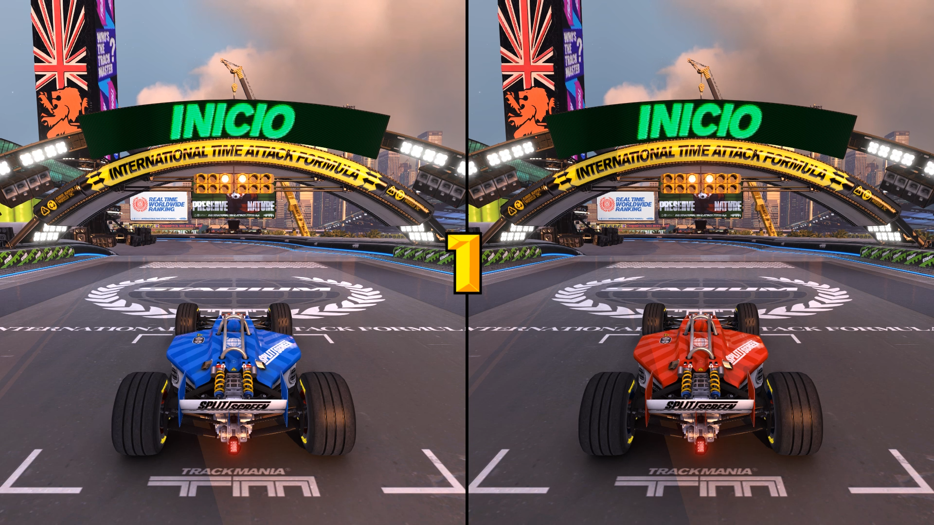 Maar de echte competitie van Trackmania Turbo speelt zich in je sofa af. In de Hot Seat modus probeer je om de beurt de tijd van de andere te verbeteren tot je brandstofmeter op is. Er gaat weinig boven iemands tijd met enkele honderdsten van een seconde te verbreken en daarna netjes de controller door te geven. Daarnaast is er Split Screen modus voor vier spelers waarbij je als eerste de eindmeet moet bereiken.