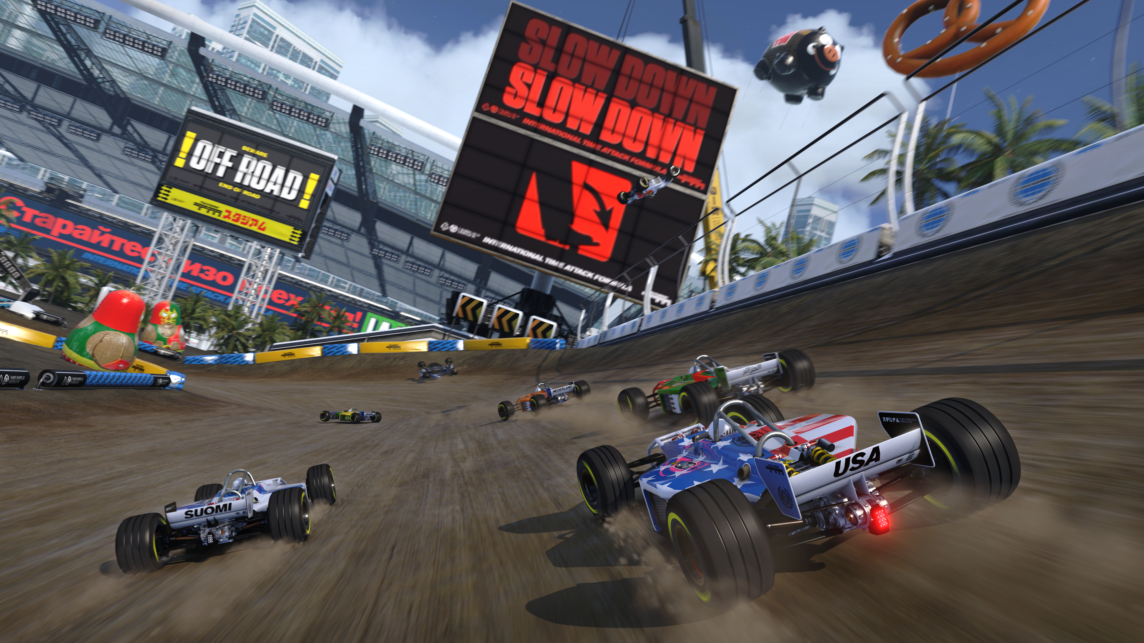 De vier verschillende omgevingen bieden echter meer dan alleen visuele afwisseling. Elke categorie heeft zijn eigen wagen. In de Canyon Grand Drift omgeving rijd je met een zware bolide die aan hoge snelheden kan driften, maar in de lucht helemaal onhandelbaar is. Lagoon Rollercoaster trotseer je met een buggy die vliegensvlug van richting verandert, maar bij het minste korreltje zand uit de bocht vliegt. Tel daarbij nog een rallybakje dat graag over zandduinen vliegt en een Formule 1-wagen die quasi aan de weg kleeft, en je hebt voldoende variatie. Vooral omdat Trackmania Turbo de verschillende wagens voortdurend buiten hun comfortzone plaatst. Probeer maar eens een rustiek offroad parcours met een Formule 1-bolide te bedwingen.