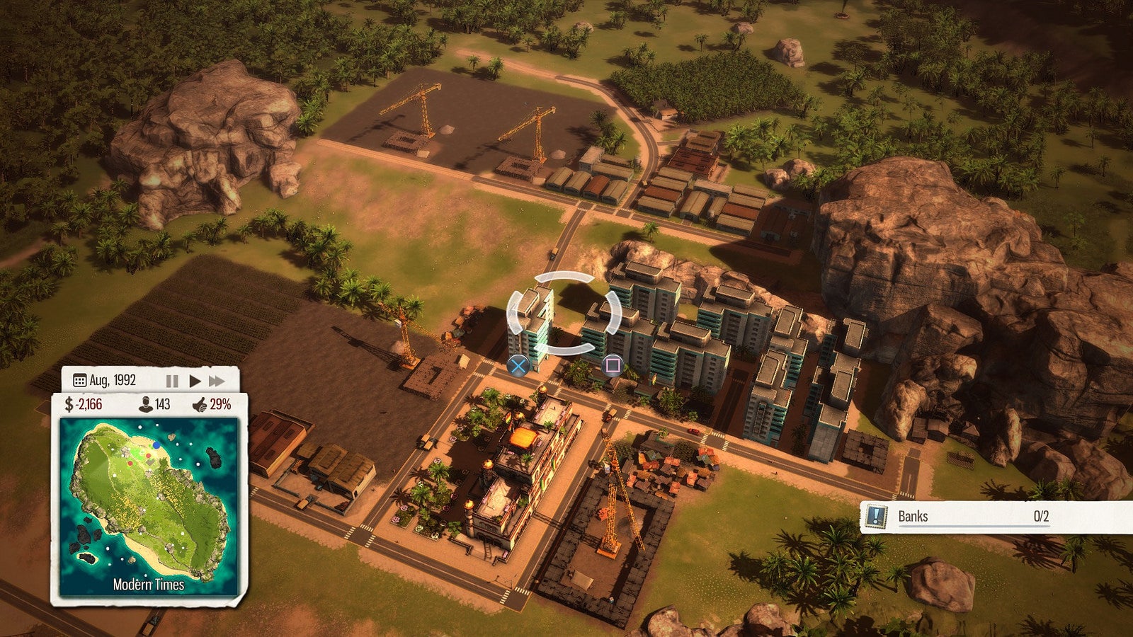 Deze versie van Tropico 5 is eigenlijk niet helemaal nieuw. De game lanceerde een jaar geleden op pc en de PlayStation 4-variant leunt dus sterk op de vernieuwingen die daarin werden doorgevoerd. Zo level je voor het eerst door onderzoek te doen. De research points die je daarvoor nodig hebt, verdien je door het bouwen van raketinstallaties, bibliotheken en observatoria. Dat is goed voor de afwisseling, want in de vorige Tropico delen was je vooral aan het investeren in de landbouw. Dat leverde namelijk snel geld op.