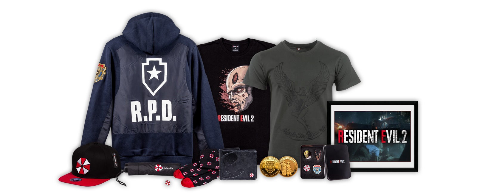 Sony start de verkoop van een nieuwe lijn Resident Evil-merchandise die samenvalt met de aankomende release van Resident Evil 2. Een van de producten is een cadeauset met daarin sokken, een paraplu en een speldje met Umbrella-opdruk. De sokken zijn ook los te koop.