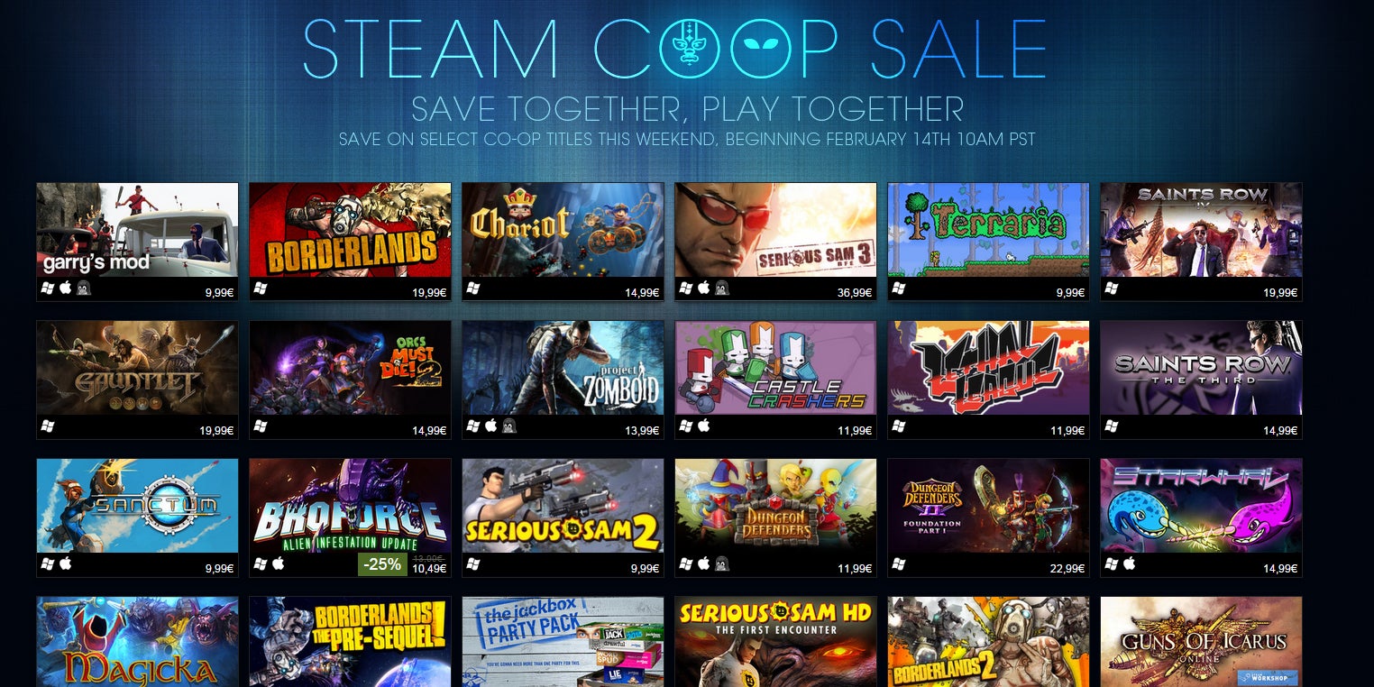 Om Valentijnsdag te vieren start Valve vanavond om 19:00 uur de Valentine's Co-Op Sale. Games die samen te spelen zijn, krijgen daarin korting.