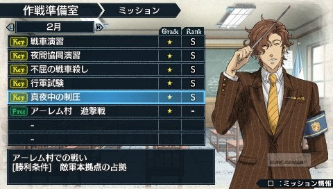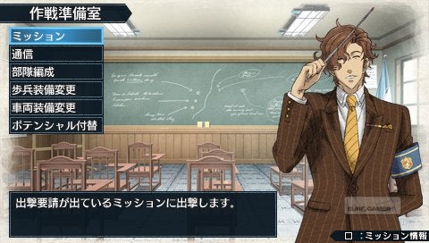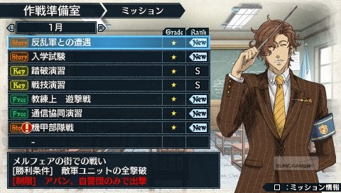 Je komt uiteindelijk terecht in de G Class, het krapuulklasje waar de hele academie op neerkijkt. Wat volgt is een soort Harry Potter meets Police Academy die duidelijk probeert mee te snoepen van de populariteit die de Persona reeks oogstte met zijn school-setting. Verwacht echter geen gecompliceerde relaties die je moet onderhouden met al je schoolmakkers. De invloed van schoolperikelen sijpelt door tot in de dialogen, maar temidden de vuurlinie is de invloed zeer beperkt. Misschien maar best zo. De gigantische campus van je school annex legeracademie dubbelt onmiddellijk als vrijheidsbarrière. Overal waar je kunt gaan en staan bevindt zich binnen het terrein van de academie. Gebieden waar er iets te beleven valt - meestal een dialoog - staan aangeduid met uitroeptekens. Wie geen fan is van karakterontwikkeling en zijverhalen kan ook gewoon het icoon met de dubbele uitroeptekens vinden om onmiddellijk met het plot verder te gaan. Maar dat is een ietwat trieste keuze, vooral als je een hart hebt voor bizarre Japanse humor.