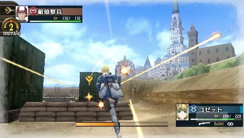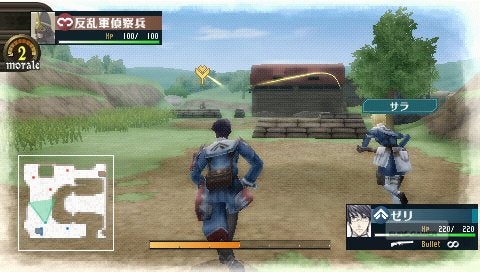 Niet alleen de setting, maar ook het vechtsysteem komt terug in al zijn glorie. Een positief punt, indien dat nog niet duidelijk was. De mechaniek was niet alleen goed, het was ook nog eens origineel - een opzet die we hier bij Eurogamer zeker kunnen waarderen. Bij een eerste analyse wijst alles naar een Tactical RPG. Er is een speelveld voorzien om in rond te huppelen en alle acties verlopen turn based. Klinkt allemaal zeer vertrouwd - totdat je ziet hoe Valkyria Chronicles deze twee elementen behandelt. Om te beginnen zijn de slagvelden geen platte schaakborden waar je volledige vrijheid aan boeien wordt gelegd door aaneengeschakelde vierkantjes (of hexagonalen, desnoods). Bij elke beurt kun je een beperkt afstand lopen, te vergelijken met de vrije beweging in een action of adventure game - zonder daarbij het strategische element te verwaarlozen. Het tweede aspect ligt onder invloed van het hele alternatieve oorlogsthema. Het mag dan nog een fictief Europa zijn, zaken zoals magie en ander bovennatuurlijk gezwets bestaan ook hier enkel in sprookjes. Dolken en scepters moeten plaatsmaken voor granaten en schietijzers uit grootvaders tijd - wat de game vanzelfsprekend een shooter-element oplevert. Het eindresultaat kan nog het best omschreven worden als een Third Person Shooter meets Strategy meets RPG.