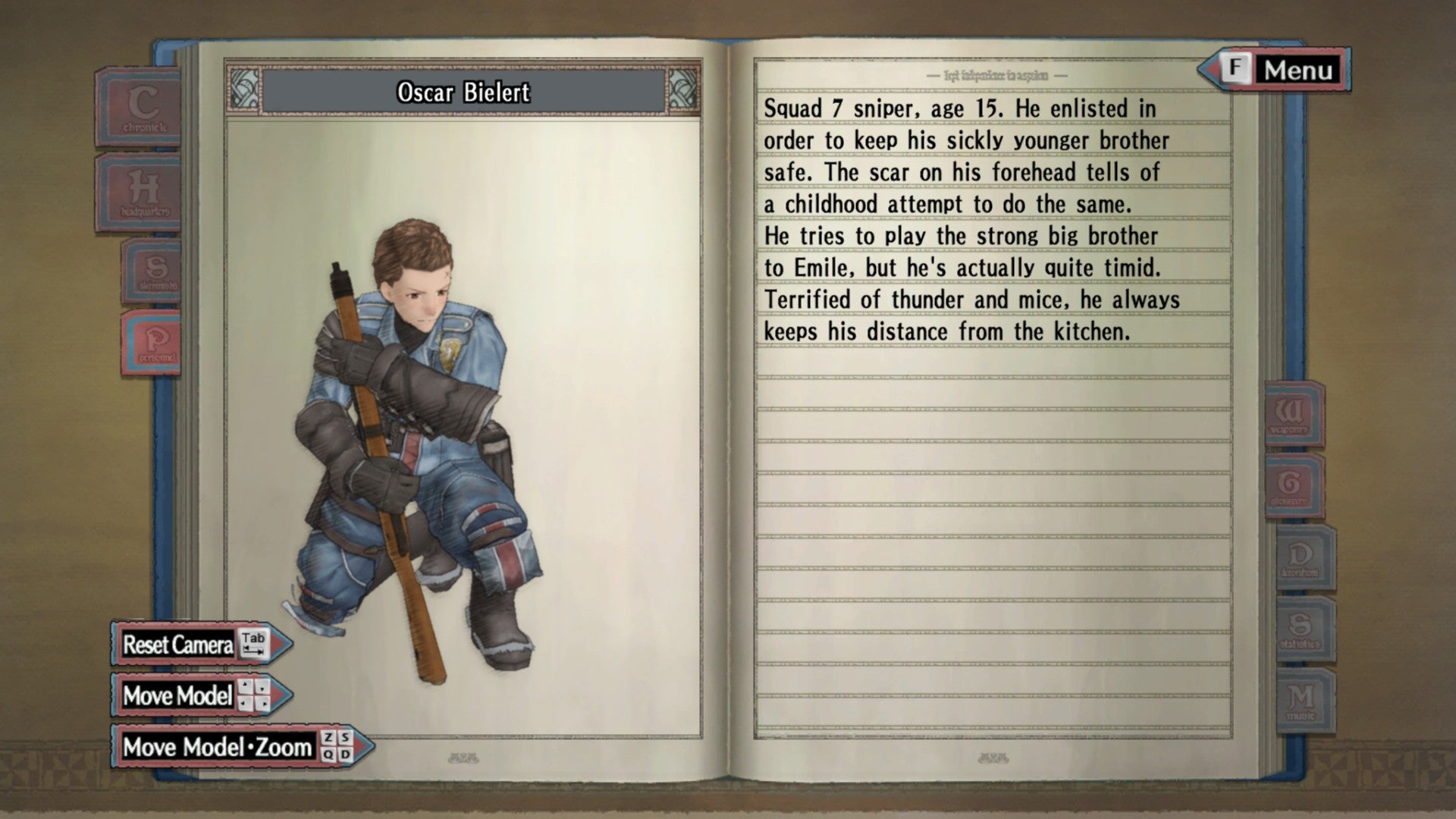 In het Personnel-menu lees je bijvoorbeeld dat een bepaalde soldaat slechts vijftien jaar oud is. Bovendien vecht hij niet uit vaderlandsliefde, maar om zijn kleine broertje te beschermen. Ook thema's zoals racisme en genocide gaat de game niet uit de weg. Zo worden de donkerharige Darcsens door veel Gallians gediscrimineerd omdat ze volgens de overlevering volledige steden met de grond gelijk gemaakt zouden hebben.