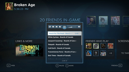 De nieuwste functie van Steam is een muziekprogramma dat op de zogenaamde Big Picture-modus je lokale mp3-bestanden afspeelt. Valve verschaft daarmee een veelgevraagde feature voor Steam. In een recent bericht meldt het bedrijf dat "klanten verzochten om op een simpele manier tijdens het spelen muziek te openen en af te spelen".