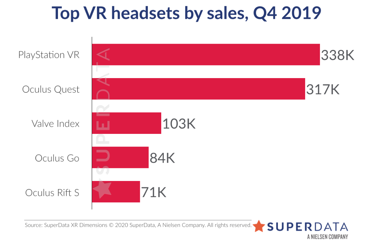 Vermoedelijk heeft de aankondiging van Half-Life: Alyx in november de verkoop een boost gegeven. Intussen is de headset zelfs volledig uitverkocht. Toch is de Valve Index ondanks die stijging nog lang niet de best verkochte headset. Die eer is nog steeds weggelegd voor de PlayStation VR, die afgelopen kwartaal meer dan 338.000 keer over de toonbank ging.