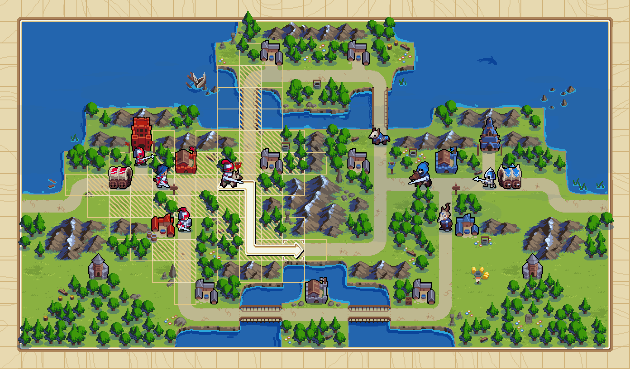 Tijdens de hands-on-sessie wordt het onmiddellijk duidelijk dat Wargroove er niet alleen interessant uitziet, maar eveneens intuïtief wegspeelt. Dat komt voornamelijk door de onmiskenbare inspiratiebronnen uit de stal van ontwikkelaar Intelligent Systems. Net zoals bij Fire Emblem en Advance Wars bestaat het speelveld van Wargroove namelijk uit een overzichtelijk rooster, waarover je de manschappen laat marcheren. Naast traditionele units zoals soldaten, boogschutters en ridders bevat Wargroove eveneens magiërs, reuzen, heksen en draken.