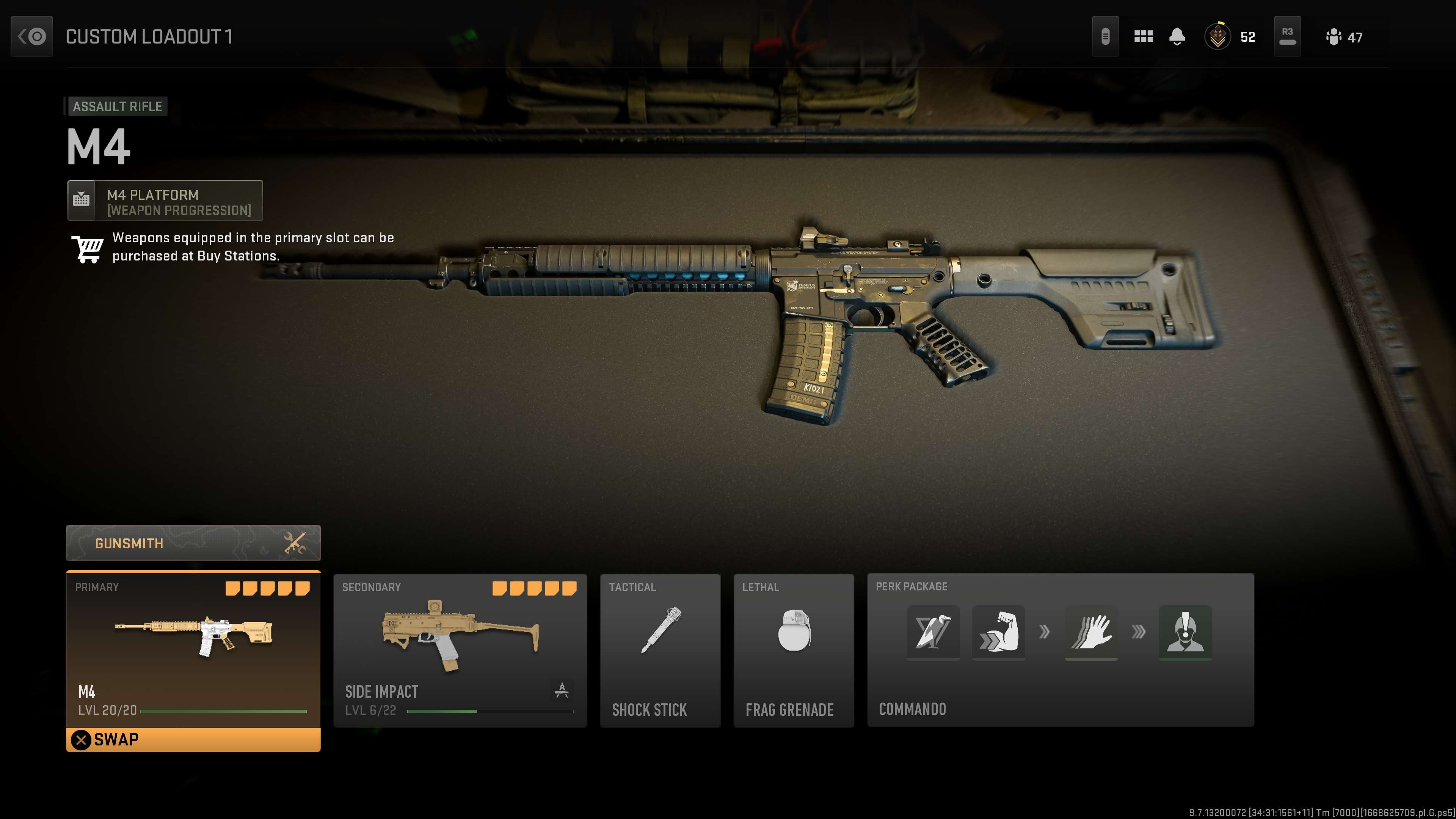 De M4 is het eerste wapen in het 'M4 Platform' progressiepad. Door de assault rifle te gebruiken en levelen, kun je geleidelijk andere wapens en attachments zoals de M16 vrijspelen.