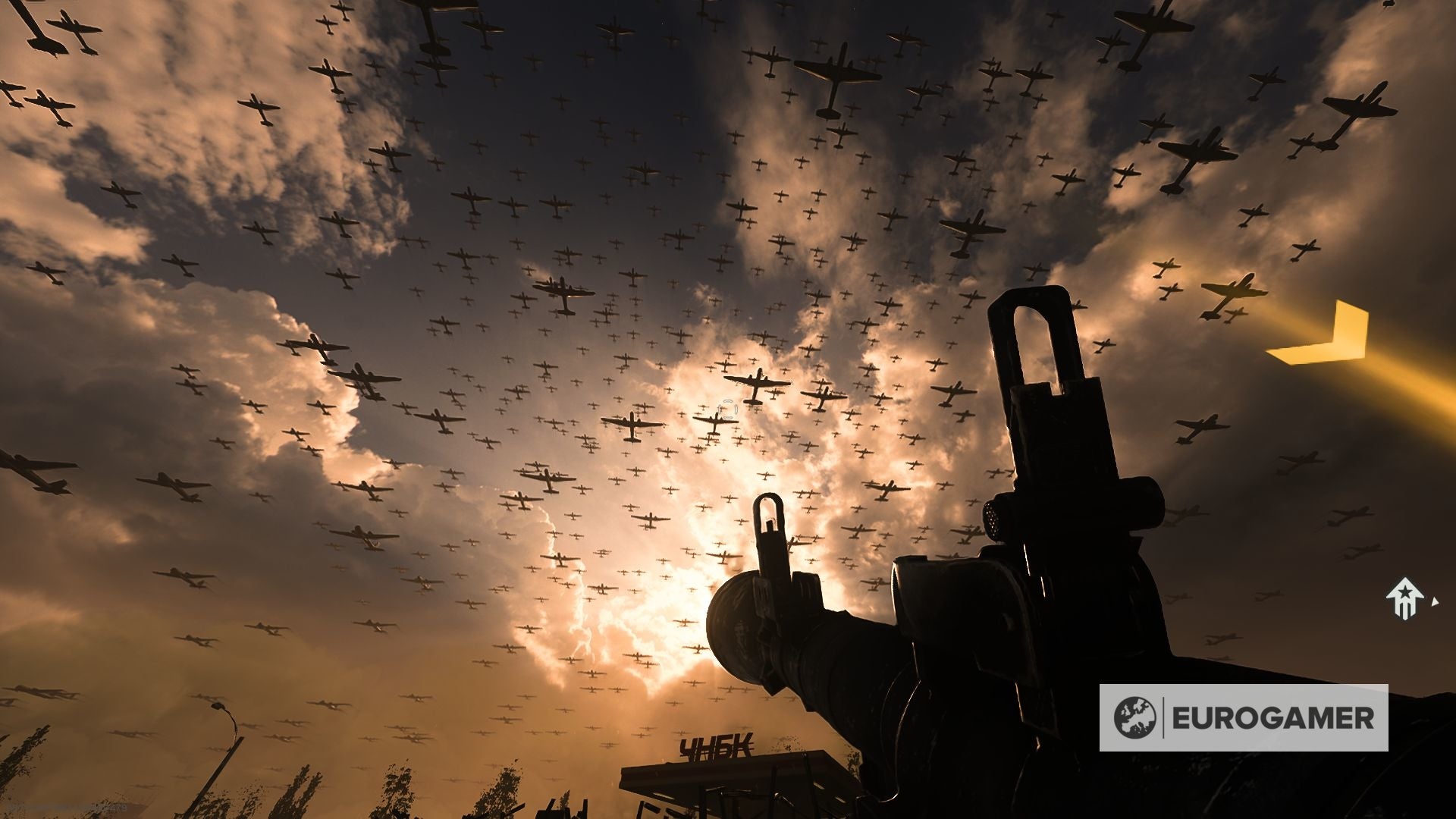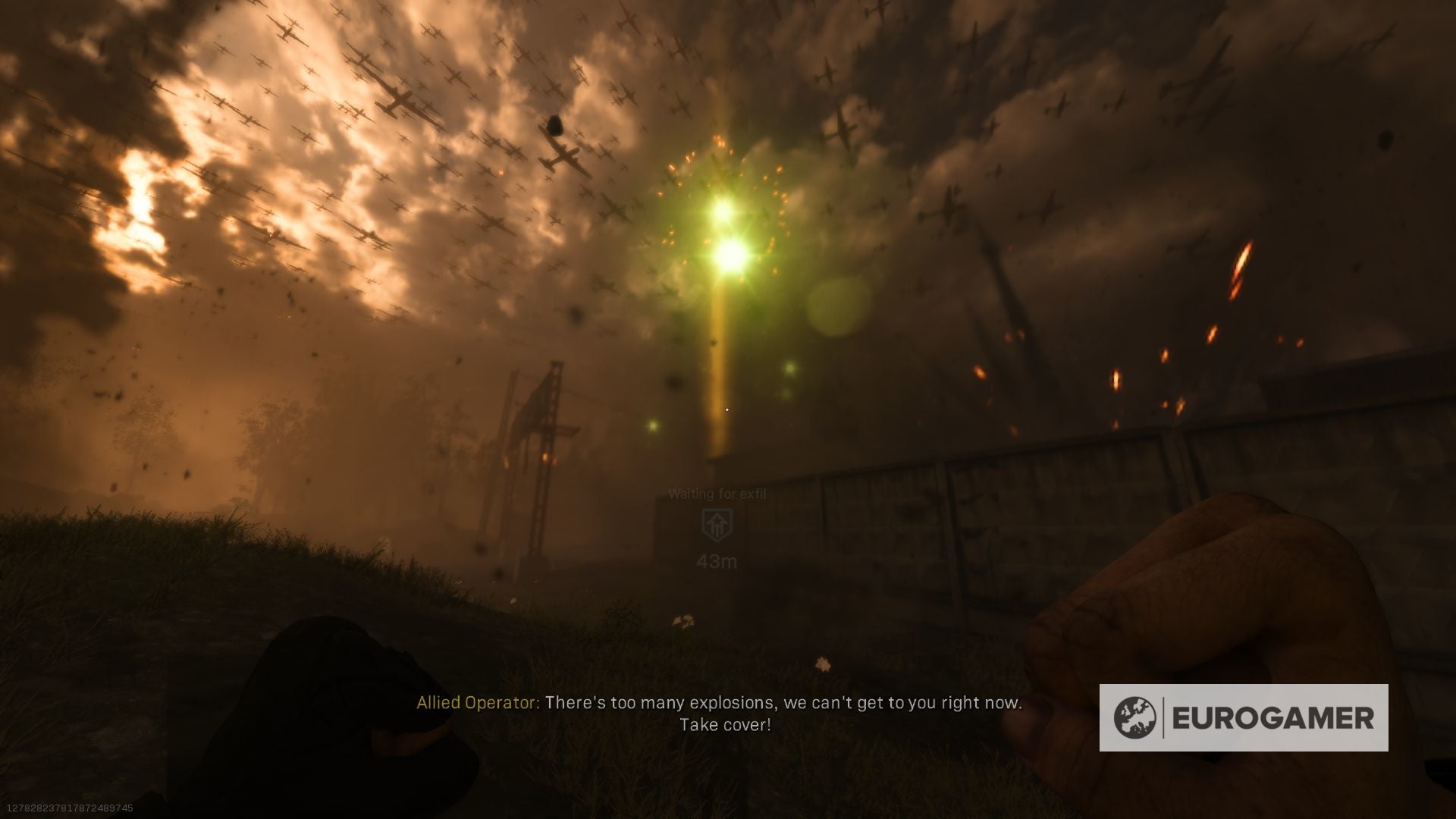 Plots beginnen er bommen uit de lucht te vallen, maak dus dat je weg bent! Je kan op dit punt geen enkel voertuig gebruiken dus sprint naar de aangeduide locatie. (In onze ervaring kan de sprint knop soms stoppen met werken tijdens de match trouwens. Het kan een tijdelijke bug zijn, maar wees erop voorbereid dat het kan gebeuren.)
