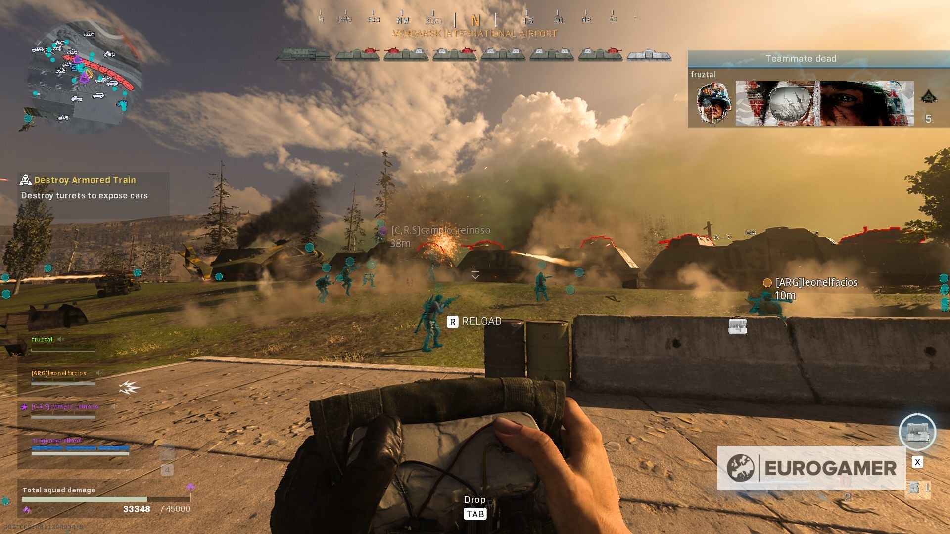 Vanaf hier is het simpel: alle squads moeten samen naar dezelfde plek gaan en zich voorbereiden om de bepantserde trein in de val te lokken. Dit doe je door TNT te planten op de gemarkeerde locaties op de kaart.