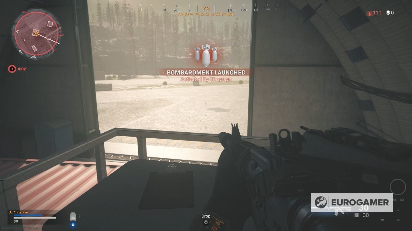 Voor de rest, als je naar boven gaat, heb je de mogelijkheid om een bombardement op te roepen. Dat bedekt de locatie met artillerie, wat handig is als je andere spelers je locatie ziet naderen.