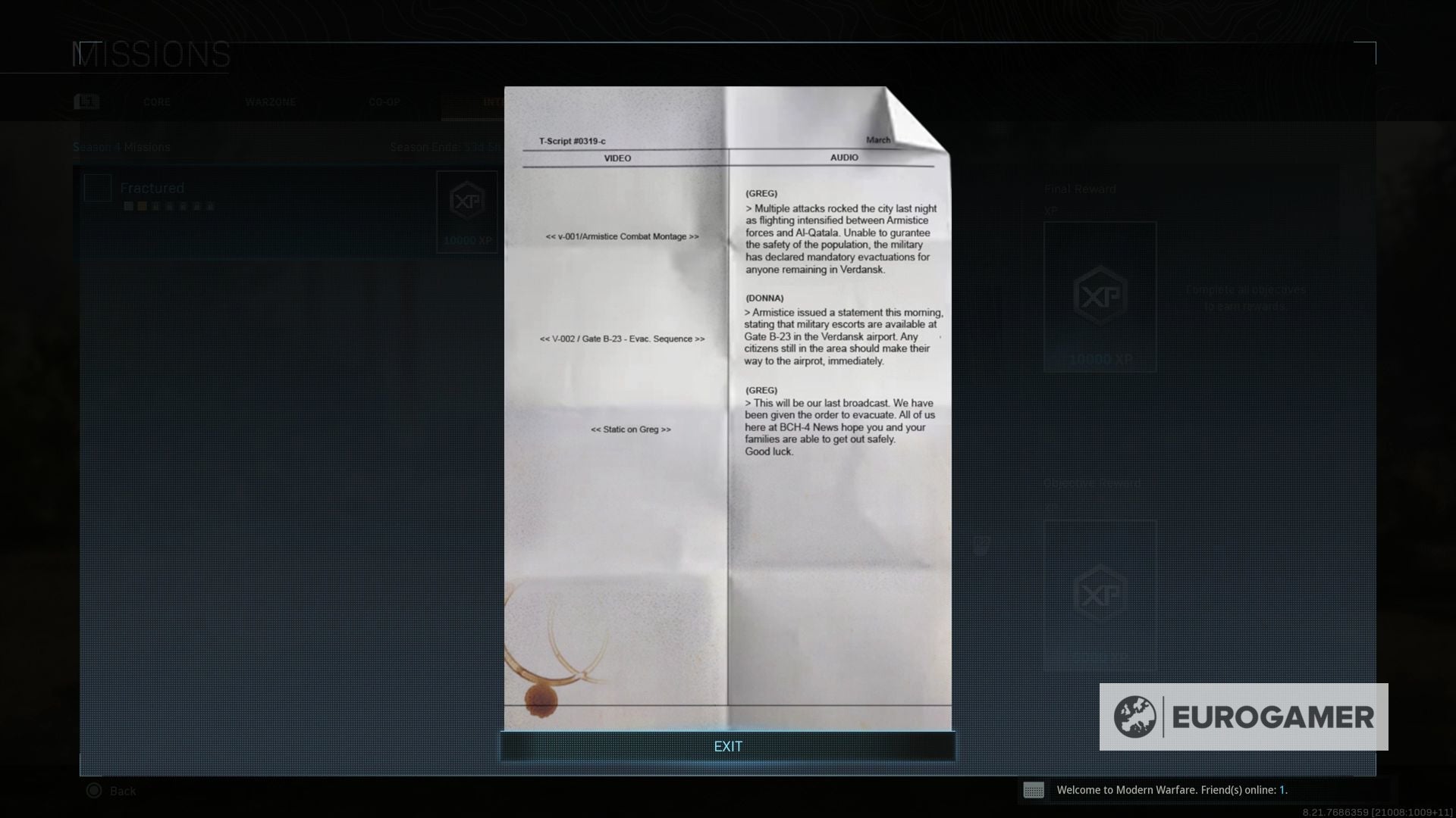 De Fractured Intel Missions werden uitgebracht samen met Warzone Season 4. Tijdens het spelen van een match moet je items op de map vinden door verschillende aanwijzingen te volgen.