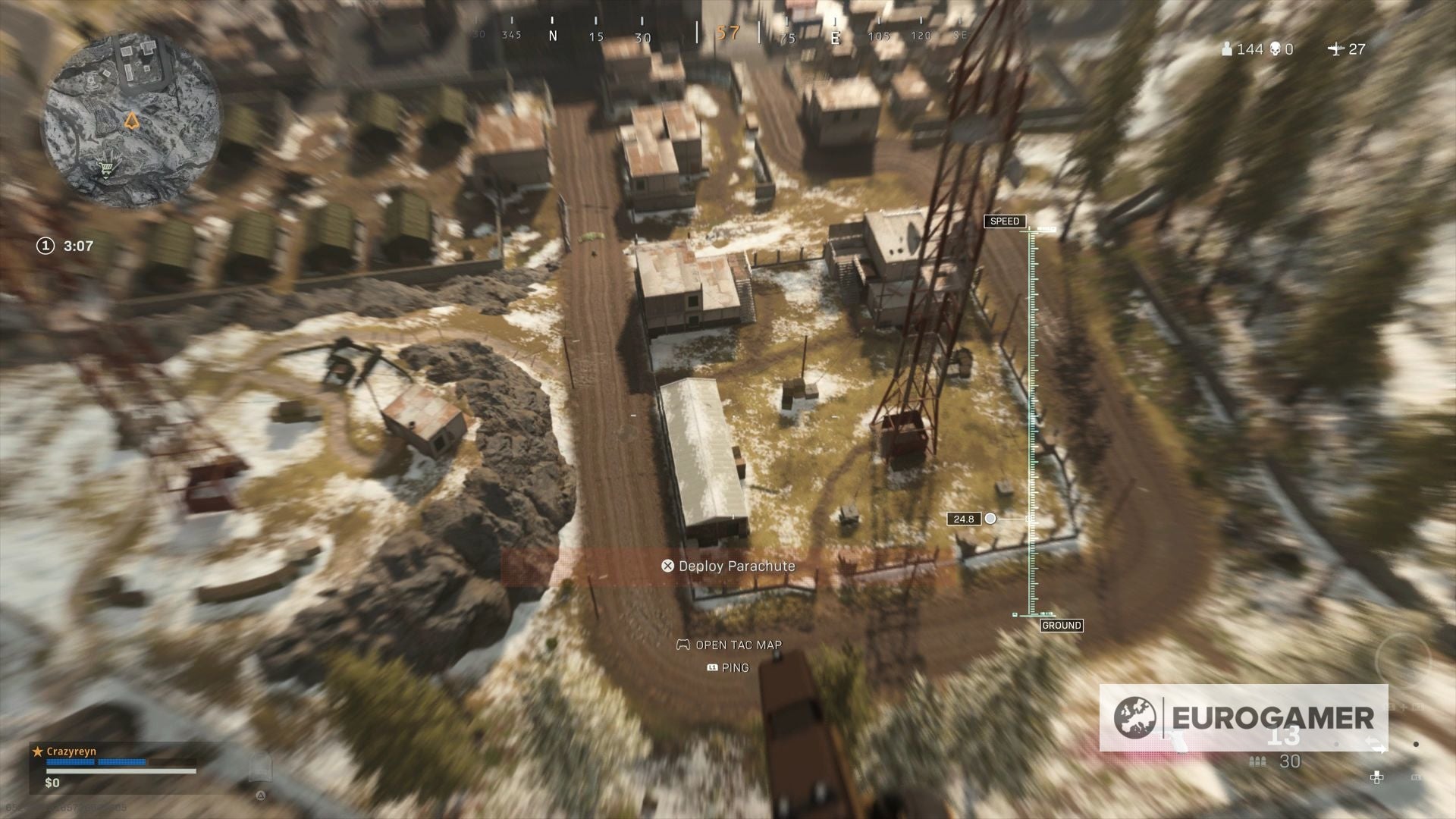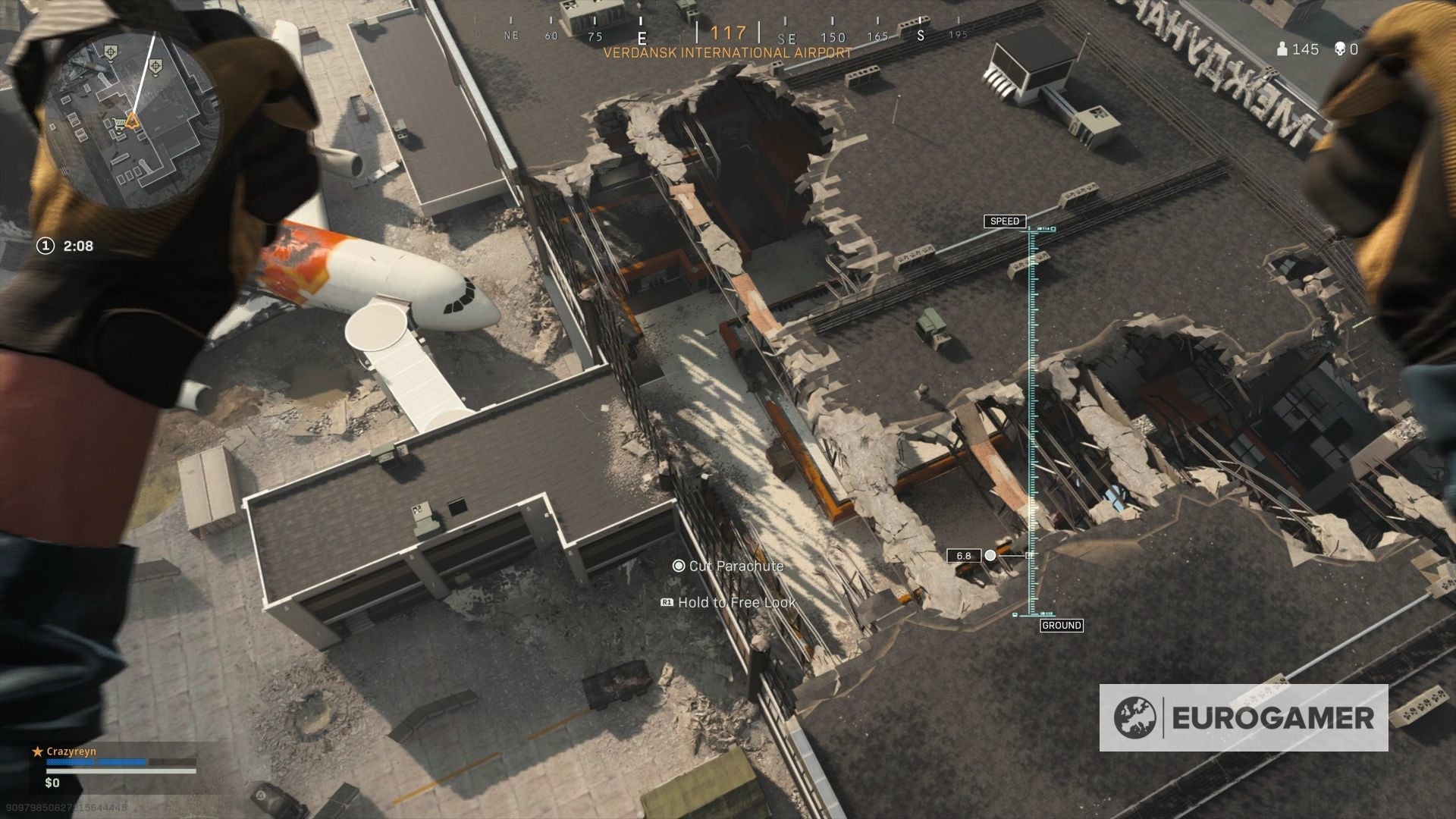 De gemakkelijkste manier is om met een parachute door het gat in het dak te springen. Dan val je vlak naast je doel.
