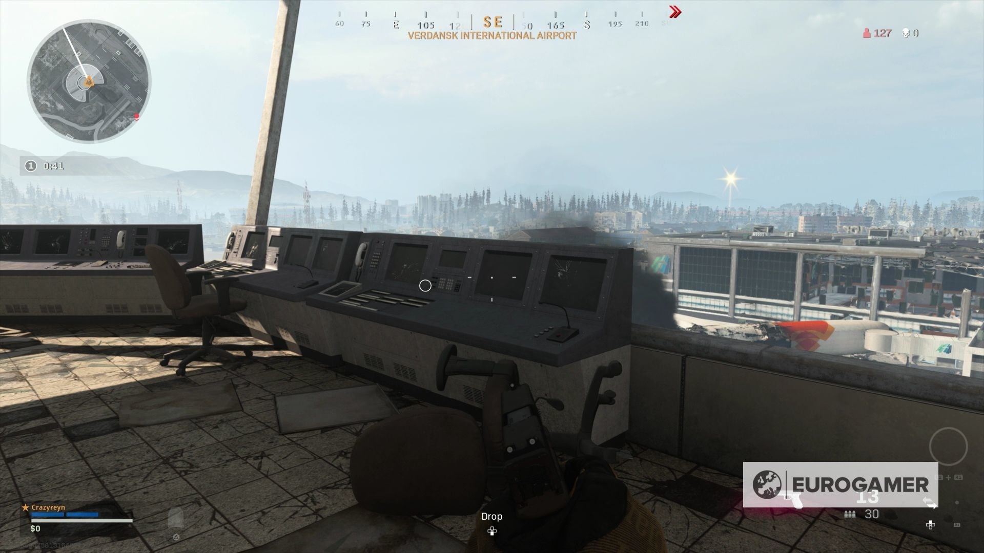 Je moet de hoogste verdieping bereiken van de controletoren. Start hiervoor op het gelijksvloers en gebruik de liftschacht om snel naar boven te gaan. Met de parachute geraak je er niet in deze keer.