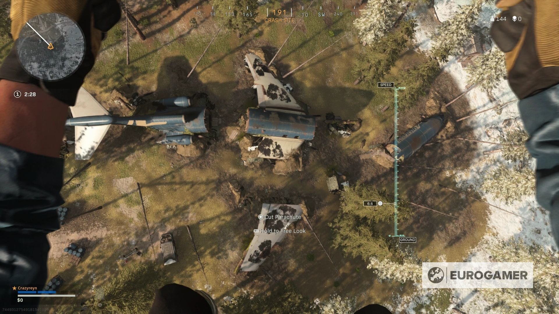 Specifieker: net ten zuiden van de Military Base is er een bos. Daar kan je het neergehaalde vliegtuig vinden. Het is gelukkig vrij goed zichtbaar wanneer je de map in valt.