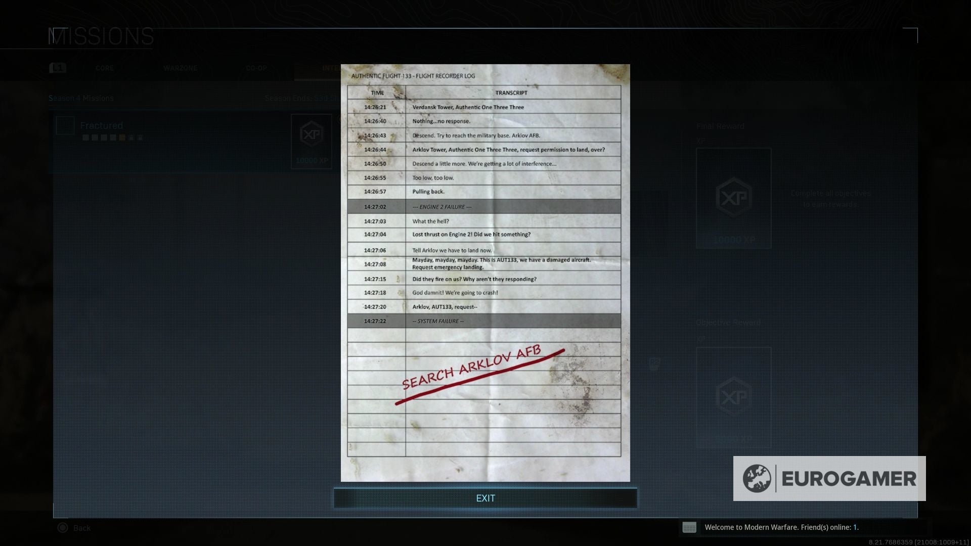 Warzone Fractured Intel 4: Verdansk ATC meldde een transponder die offline ging...