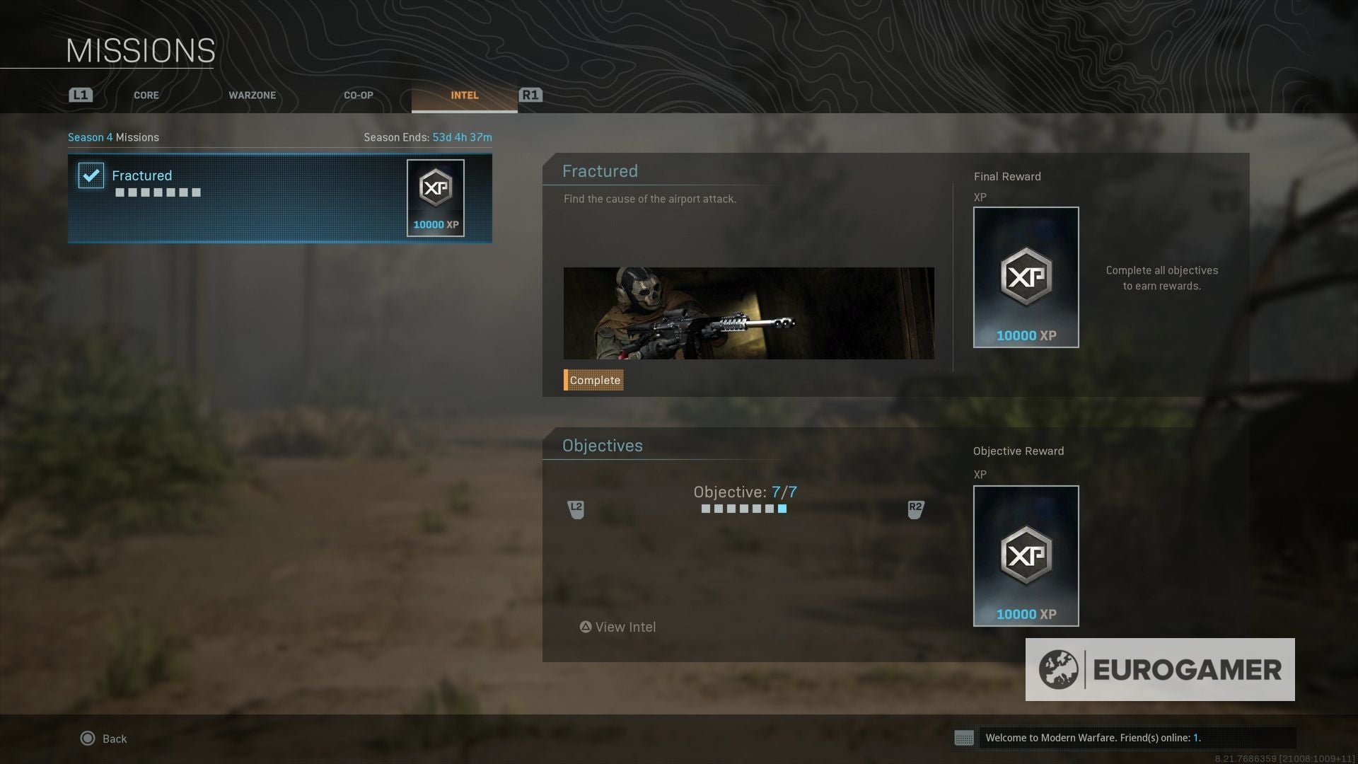 Door een missie af te werken, krijg je XP, en als je alle Fractured Intel Missions doet, krijg je 10.000 XP, wat weer een mooie boost is voor je Season 4 Battle Pass.