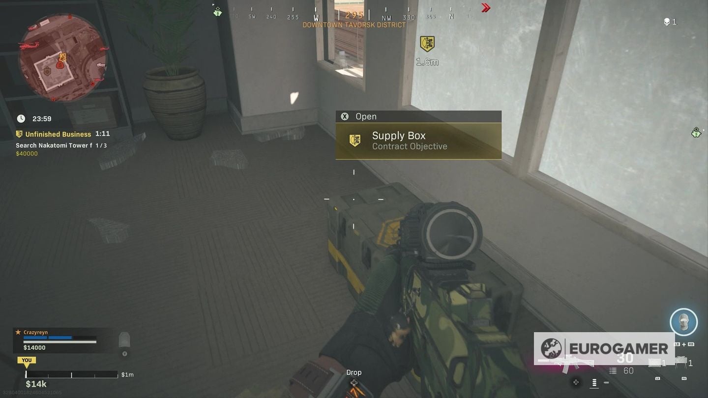 De beste manier om elk contract te voltooien is om de map te openen zodra de match begonnen is. Zoom nu in op Nakatomi Plaza, en zoek de Unfinished Business intel - het lijkt een beetje lichtgeel. Net als bij elk ander contract heb je de mogelijkheid om het te taggen, zodat het op je scherm verschijnt als je de map verlaat.