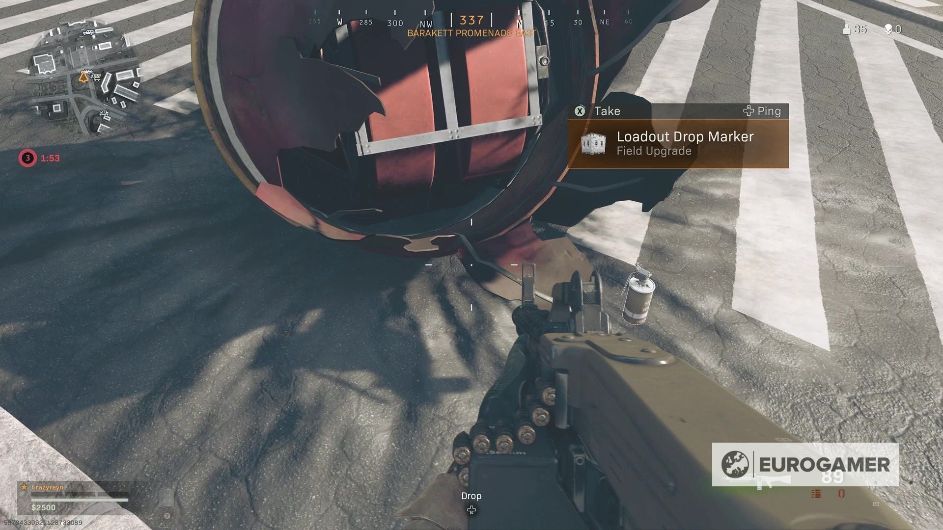 Als je eenmaal dichtbij bent, kun je een beloning van de neergestorte satelliet verzamelen, zoals bijvoorbeeld een Loadout Drop Marker.