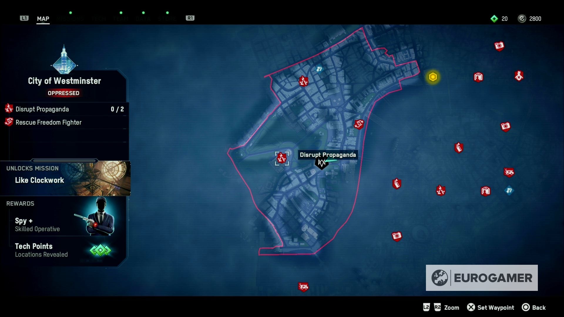 Eens je dat gedaan hebt, dan ontgrendel je een exclusieve missie, in dit geval is dat Like Clockwork. Daarin moet je het Palace of Westminster binnendringen en met een Spiderbot naar de klokkenkamer van de Big Ben gaan. Hieronder zie je hoe dat juist in z'n werk gaat: