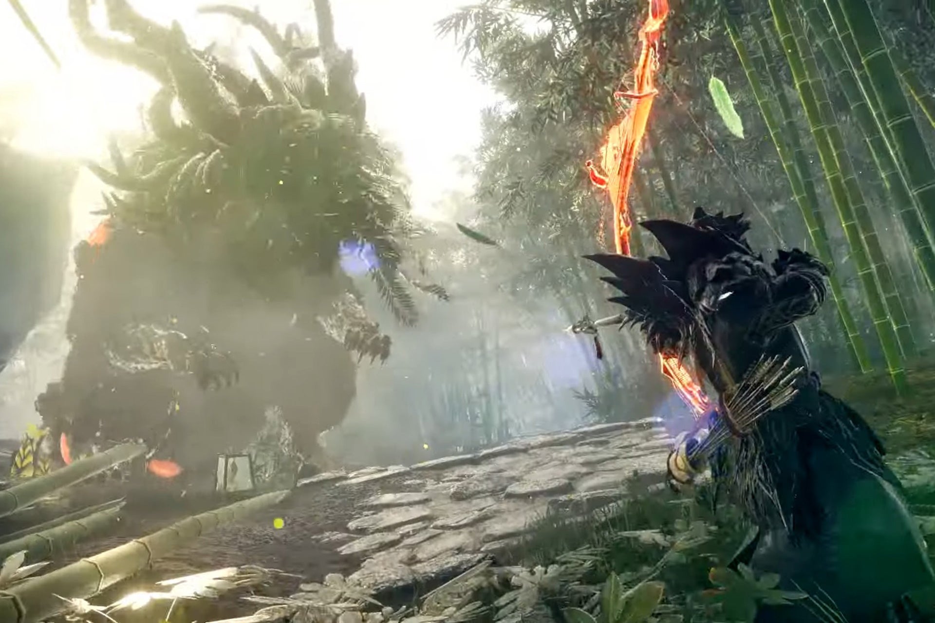 Wild Hearts speelt zich af in een fantasieversie van het feodale Japan. Je vertolkt de rol van jager die op mysterieuze wezens genaamd Kemono jaagt. Deze lijken fauna en flora op bijzonder creatieve manieren te versmelten. Zo zag ik tijdens de presentatie en mijn gameplaysessie een eekhoorn waarop er frambozen groeiden, konijnen met radijzen op hun oren en een metershoog wild zwijn volledig begroeid met mos en vurige slagtanden. En dit was slechts een greep uit de vele vreemde wezens die de game te bieden heeft.