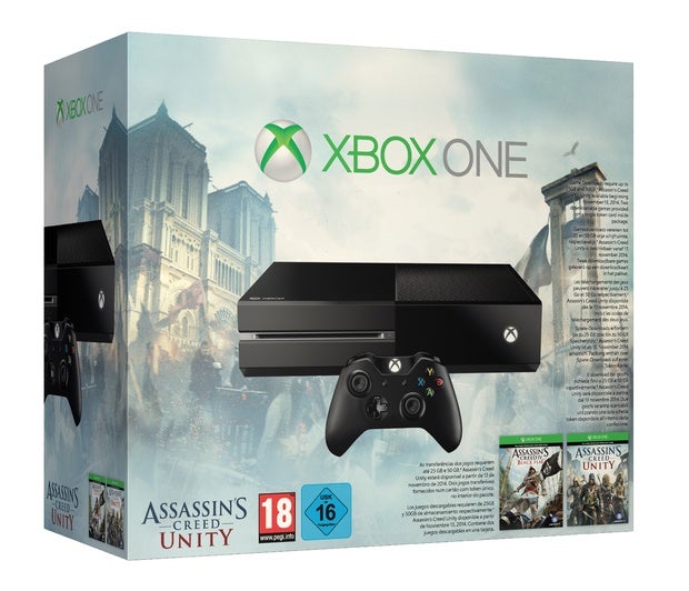 De Xbox One-bundel bestaat naast de digitale versies van beide Assassin's Creed-games uit een zwarte console, een controller en één maand Xbox Live Gold-lidmaatschap. Het pakket ligt vanaf 4 november in de Belgische en Nederlandse winkels. De adviesprijs van de bundel is 399 euro.