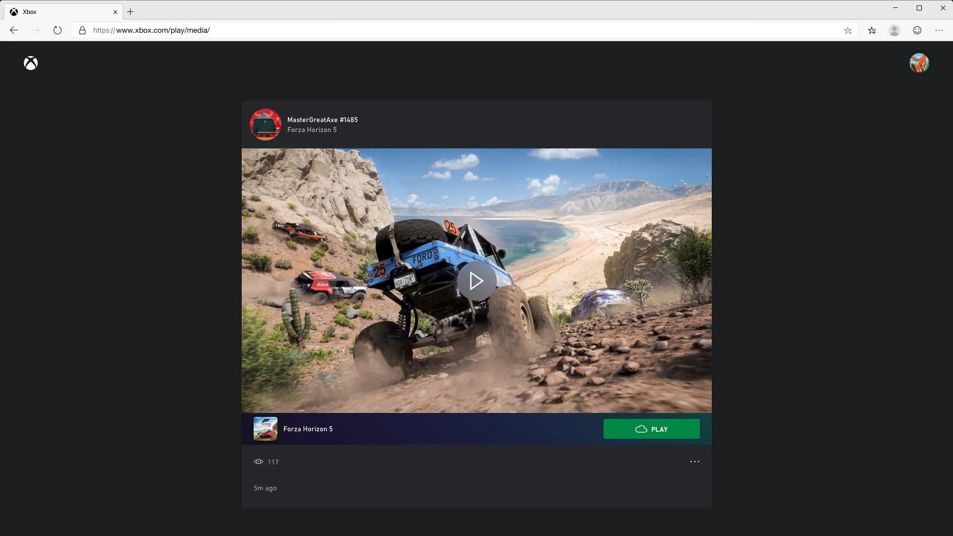 Verder kun je nu via de gedeelde game clips en screenshots van je vrienden en cloud gaming een game spelen op mobiele apparaten en pc. Wie bijvoorbeeld van een van zijn vrienden een clip van Forza Horizon 5 krijgt, kan die titel via de Play-knop opstarten in zijn browser. Daarvoor heb je wel een Xbox Game Pass Ultimate-abonnement nodig.