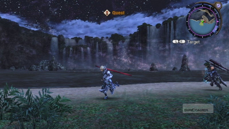 Tot hier toe zijn er nergens potten gebroken, maar de manier waarop het verhaal wordt gebracht is wel oerdegelijk. Geen Final Fantasy cutscènes waarbij je om de twee minuten stopt om nieuwe visuals te bewonderen, maar het merendeel wordt tijdens het spelen zelf verteld. Je teammates zullen ook frequent hun eigen dialogen naar voren brengen terwijl je door Bionis trekt, en uiteraard zijn er tal van NPC's die wat extra tekst en uitleg kunnen verzorgen als je hierom vraagt. Na een tijdje begin je de filosofische elementen, die tekenend zijn voor Takahashi, te herkennen en appreciëren voor wat ze zijn: niet mainstream en niet te cliché.