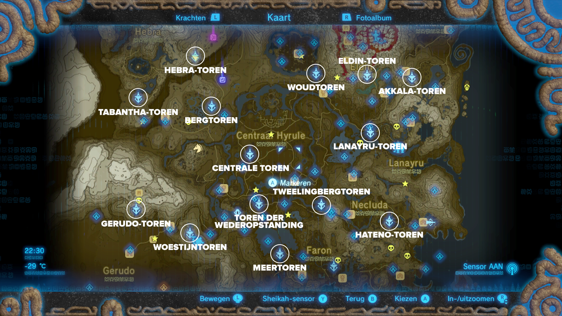 Zelda: Breath of the Wild - Toren locaties, wereldkaart invullen