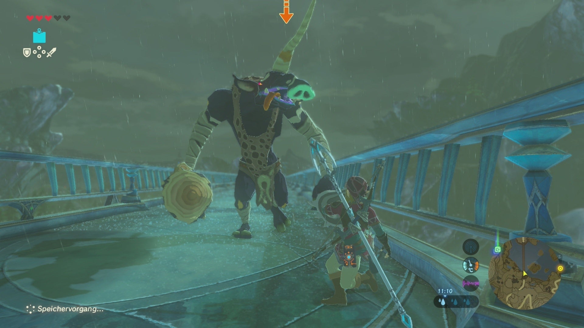 Het blijft nog even vervelend vechten, met sterke Lizalfos die elektropijlen op je afschieten. Het is echter de moeite hen te verslaan want ze laten sterke wapens en schilden vallen. Hierna kom je bij Laruto's oversteek. Ook hier heeft Sidon je natuurlijk iets te zeggen. Deze keer is het echter iets belangrijks, want hij waarschuwt je dat er een enorme Moblin achter je aanzit. Je kunt ertegen vechten of gewoon weglopen.