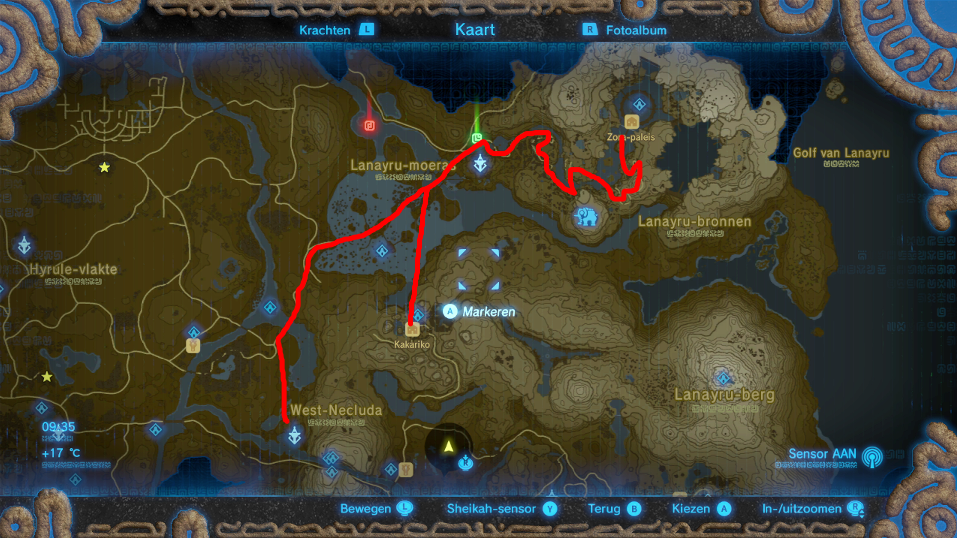 Het is een lange missie die je naar elke hoek van de enorme spelwereld zal brengen. Op je kaart zie je zodra je deze missie selecteert vier symbolen staan. De dichtstbijzijnde ligt in de buurt van Kakariko en brengt je naar het rijk van de Zora in het Lanayru gebied. Er zijn verschillende manieren om er naartoe te reizen.