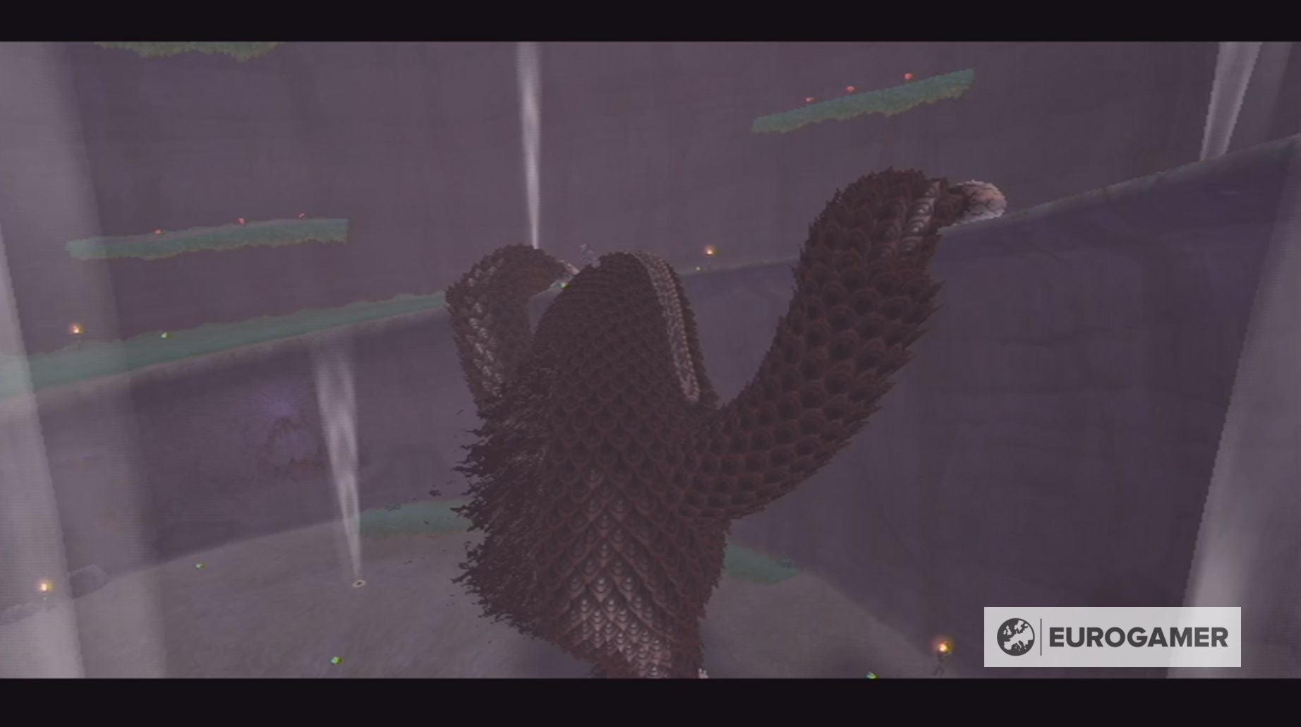 De Banneling zal deze armen gebruiken om zichzelf aan de rand van de put op te trekken. Dat wil je niet laten gebeuren want dan is het monster meteen een stuk dichter bij de Verzegelde Tempel. Gelukkig kan je de Groosenator gebruiken om dit te voorkomen.
