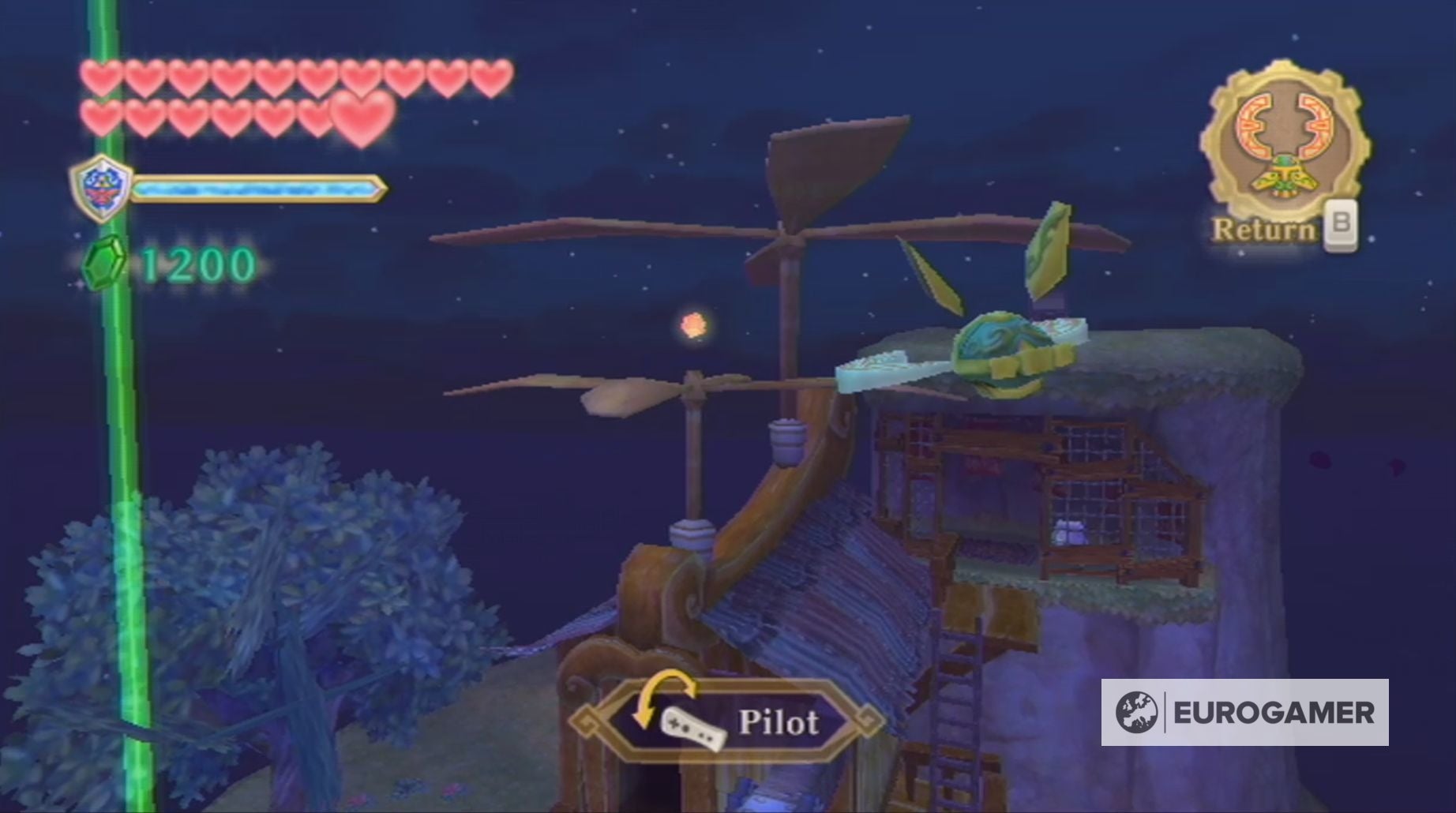 Om het zesde Dankbaarheidskristal op Skyloft te vinden, moet je naar de molen naast de Bazaar gaan. Aan de rechterkant van deze molen zie je ranken waarover je naar de richel onder je kunt klimmen.